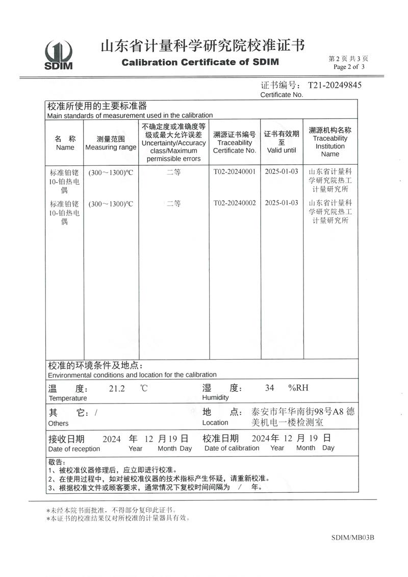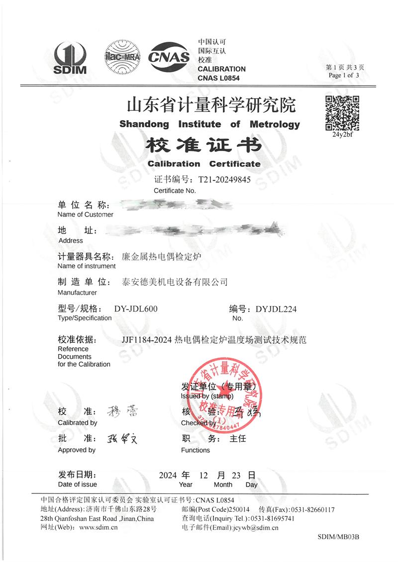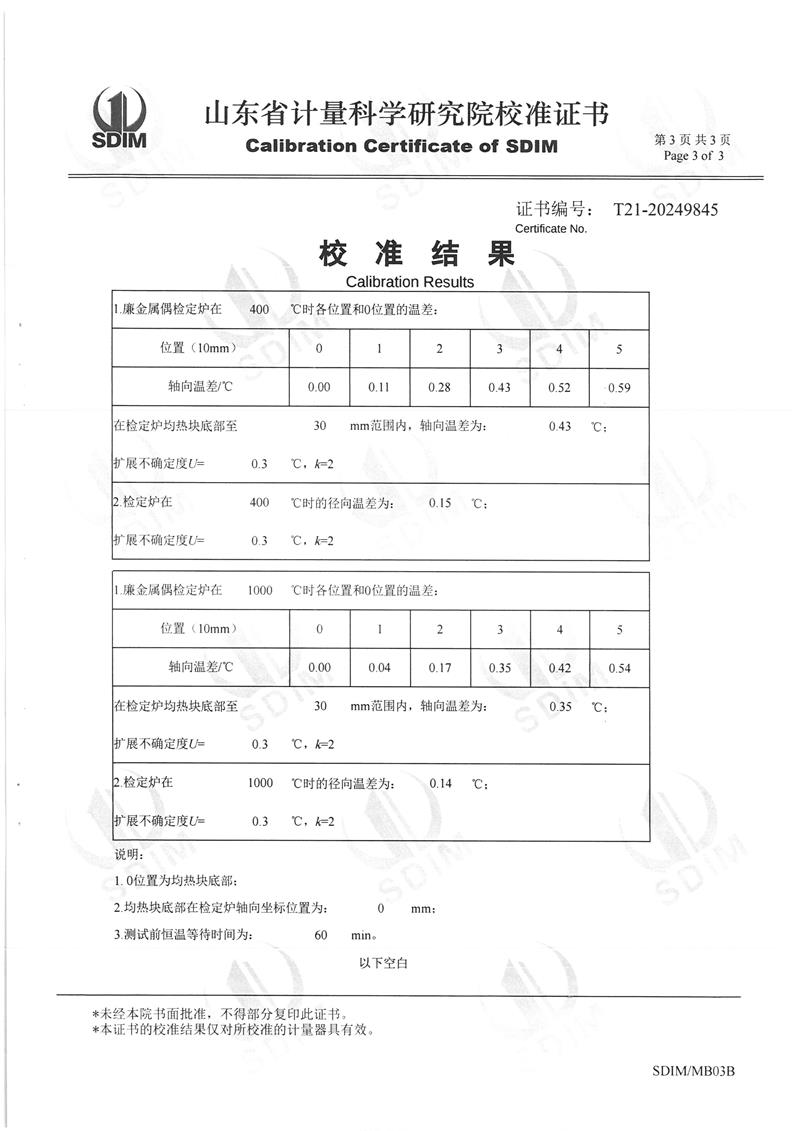 廉金屬熱電偶檢定爐(300~1200℃)校準證書 2024-12-26 本文被閱讀 5215 次