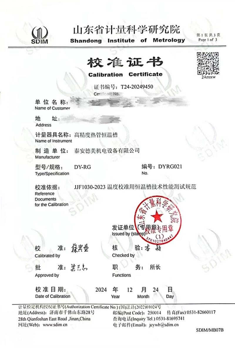 高精度熱管恒溫槽(50~300℃)校準(zhǔn)證書 2025-1-2 本文被閱讀 6015 次