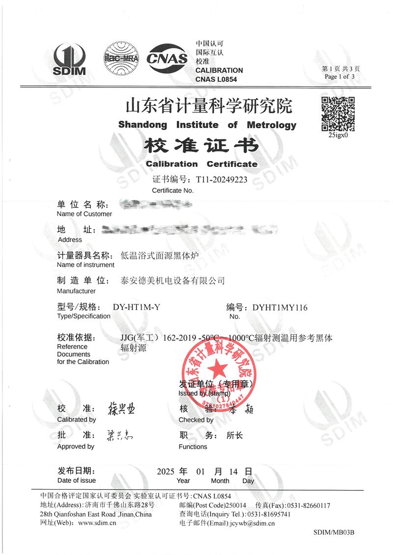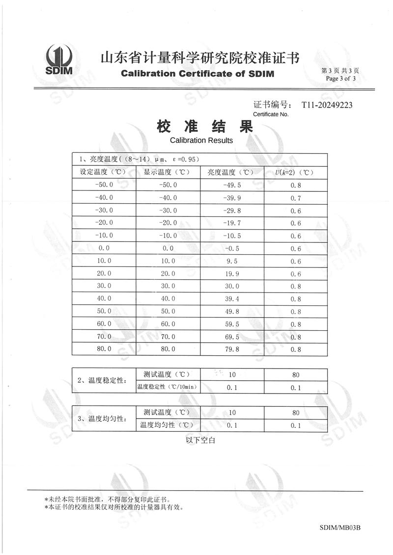 低溫浴式面源黑體爐(-50-80℃)校準證書 2025-1-20 本文被閱讀 4906 次