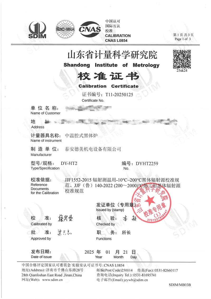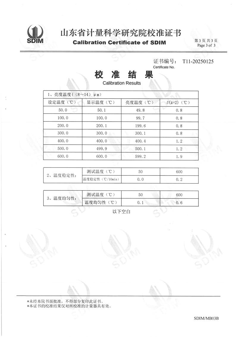 中溫腔式黑體爐(50~600℃)校準(zhǔn)證書 2025-1-25 本文被閱讀 4805 次