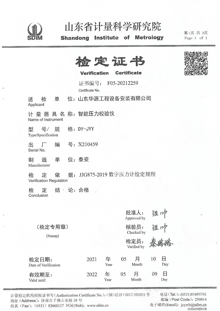 山東華源工程設備安裝有限公司-智能壓力校驗儀X210459 2021-5-27 本文被閱讀 14042 次