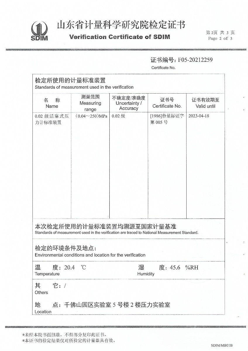 上一條:山東華源工程設備安裝有限公司-智能壓力校驗儀X210458下一條:便攜式溫濕度檢定箱(-10-60℃)校準證書