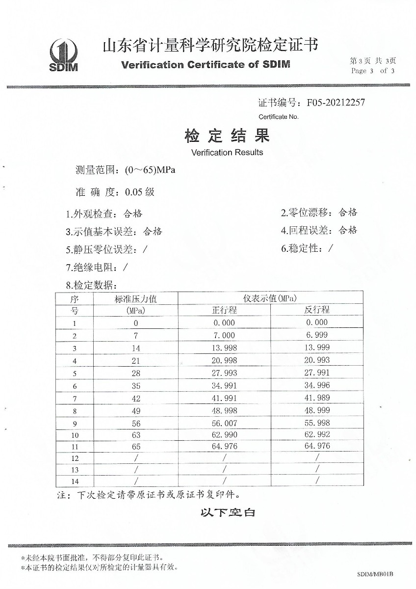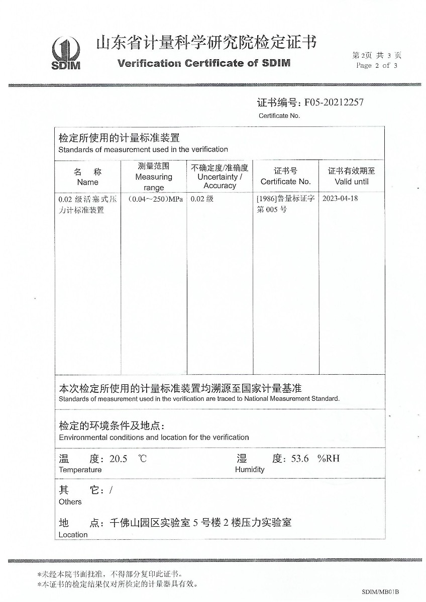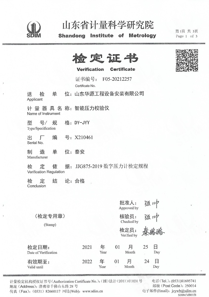 上一條:山東華源工程設備安裝有限公司-智能壓力校驗儀X210460下一條:便攜式溫濕度檢定箱(-10-60℃)校準證書