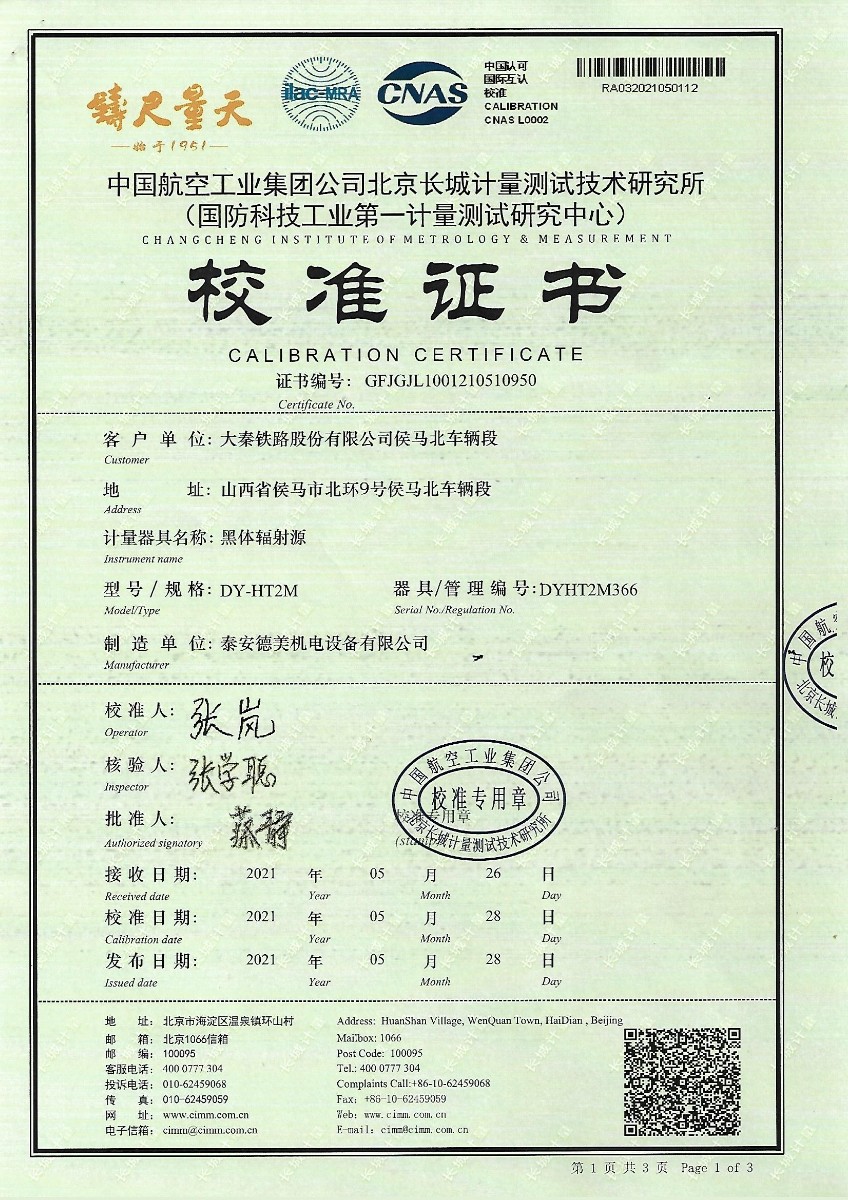 | 上一條:哈爾濱三聯(lián)藥業(yè)股份有限公司-標(biāo)準(zhǔn)通風(fēng)干濕表 | 下一條:便攜式干體爐(-30-150℃)校準(zhǔn)證書 |