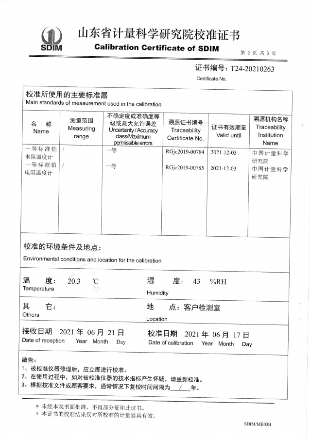 | 上一條:曹縣百通宏達(dá)熱力有限公司-數(shù)字壓力校驗儀 | 下一條:便攜式干體爐(-30-150℃)校準(zhǔn)證書 |