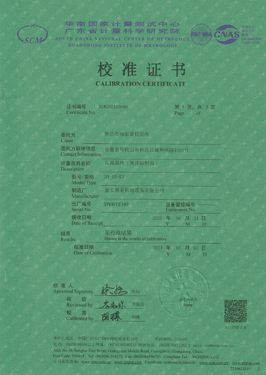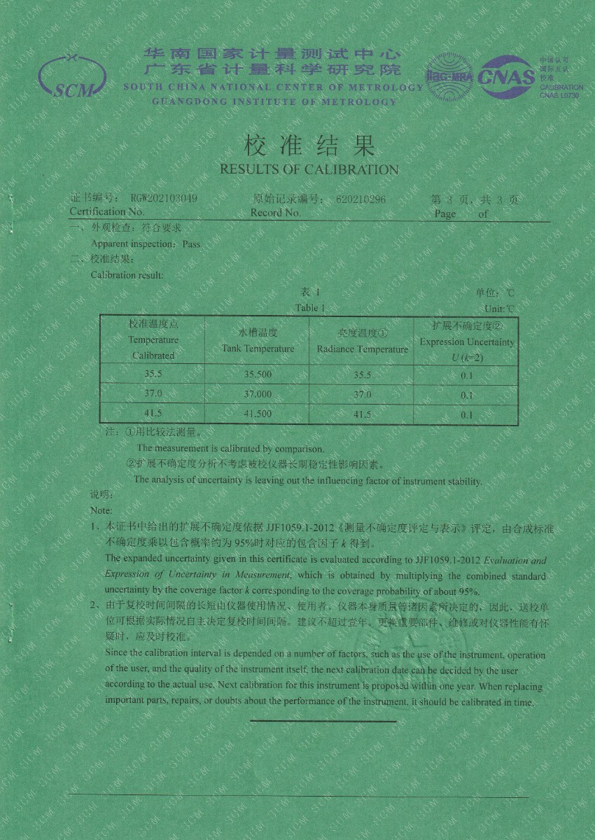 | 上一條:廣東省連平縣質(zhì)量技術(shù)監(jiān)督檢測(cè)所數(shù)字式溫度計(jì) | 下一條:便攜式干體爐(-30-150℃)校準(zhǔn)證書 |