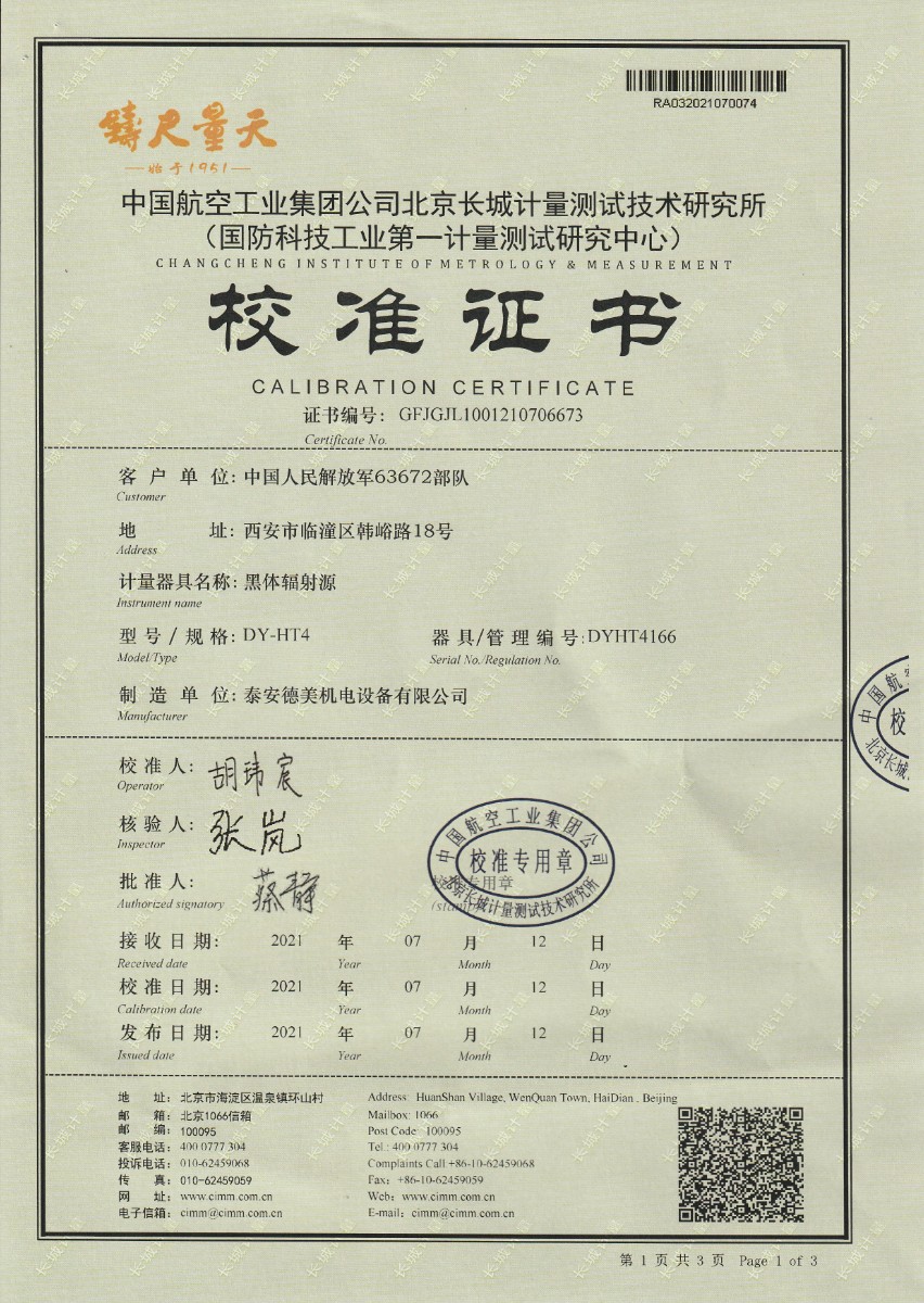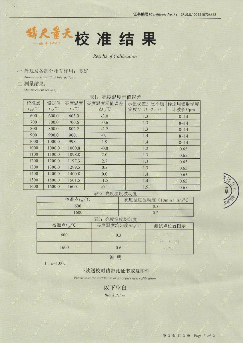 上一條:福建邁格林醫(yī)療科技有限公司-黑體輻射源 | 下一條:超低溫面源黑體爐(-40-80℃)校準(zhǔn)證書 |