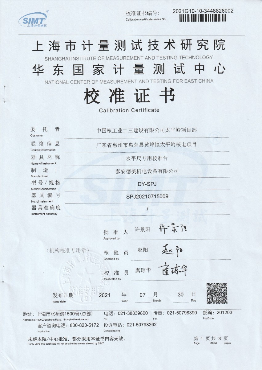 中國(guó)核工業(yè)二三建設(shè)有限公司太平嶺項(xiàng)目部水平尺專用校準(zhǔn)臺(tái)