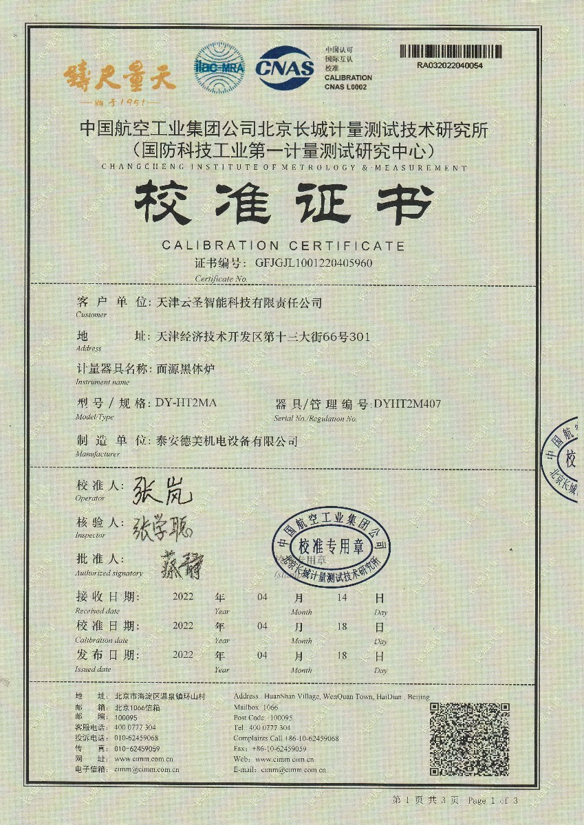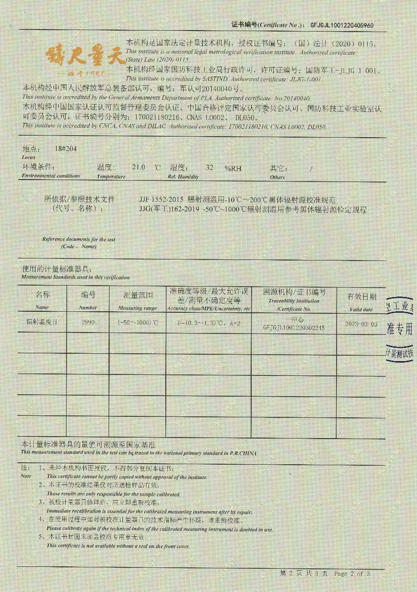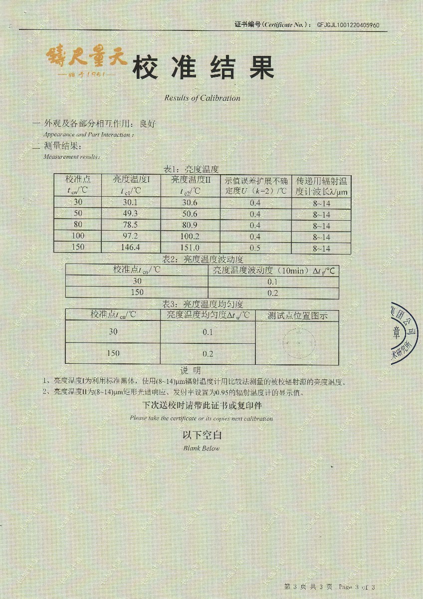上一條:浙江弘志計量測試有限公司-黑體輻射源 | 下一條:超低溫面源黑體爐(-40-80℃)校準(zhǔn)證書 |