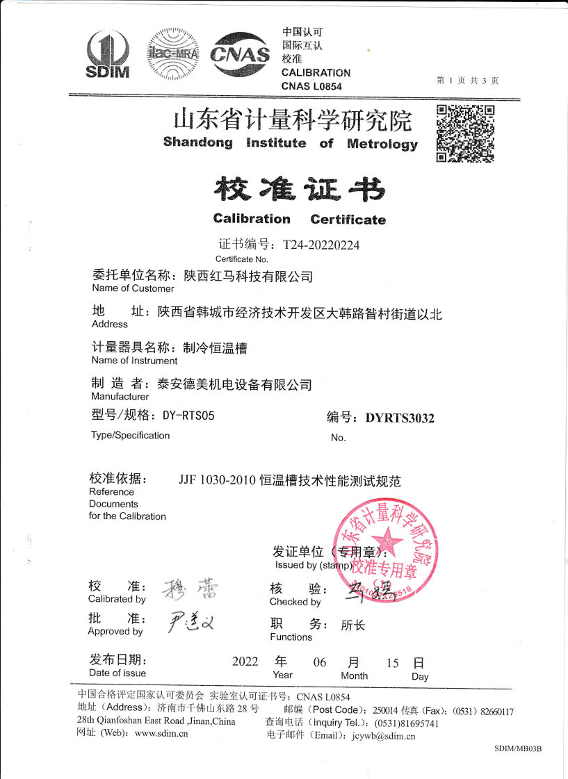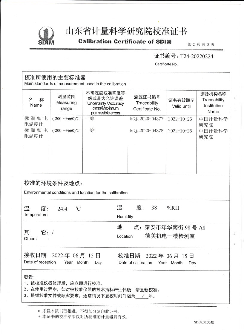 上一條:中睿(天津)檢驗(yàn)檢測(cè)有限公司-溫濕度檢定箱 | 下一條:超低溫面源黑體爐(-40-80℃)校準(zhǔn)證書(shū) |