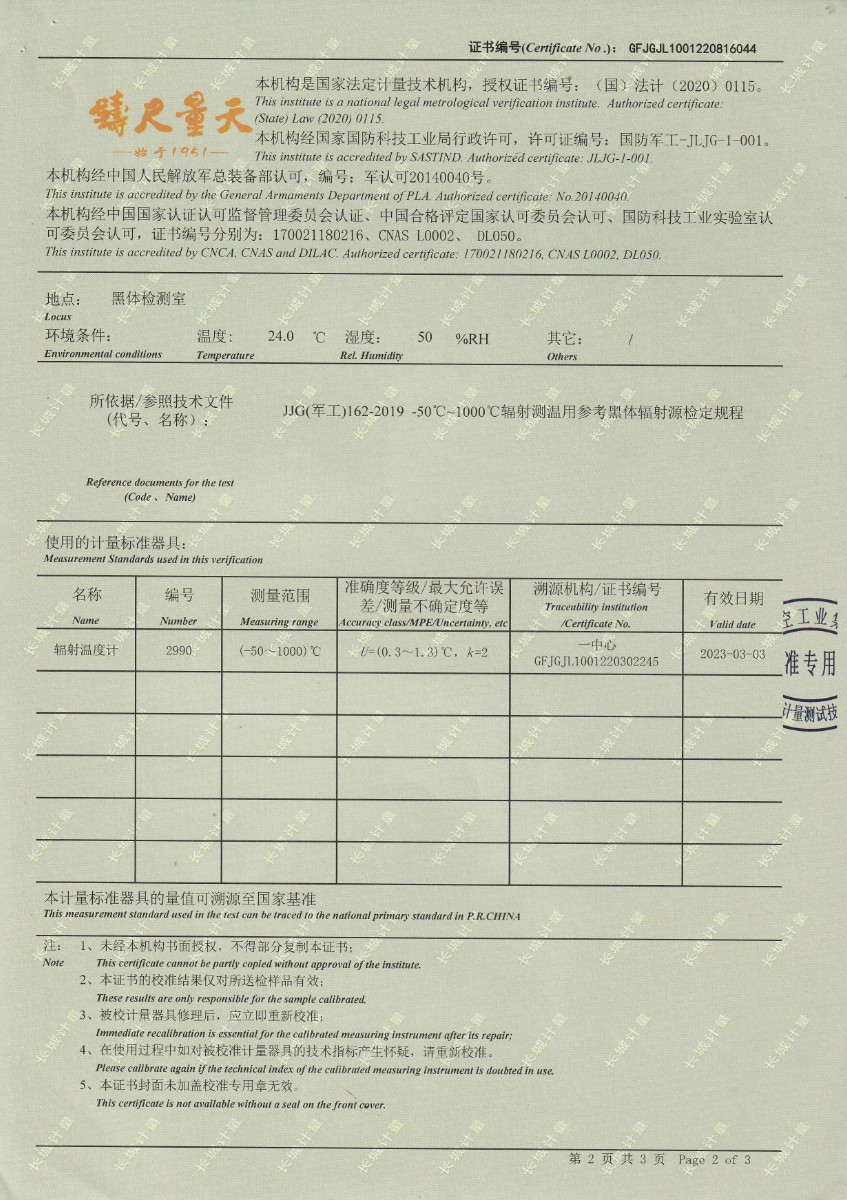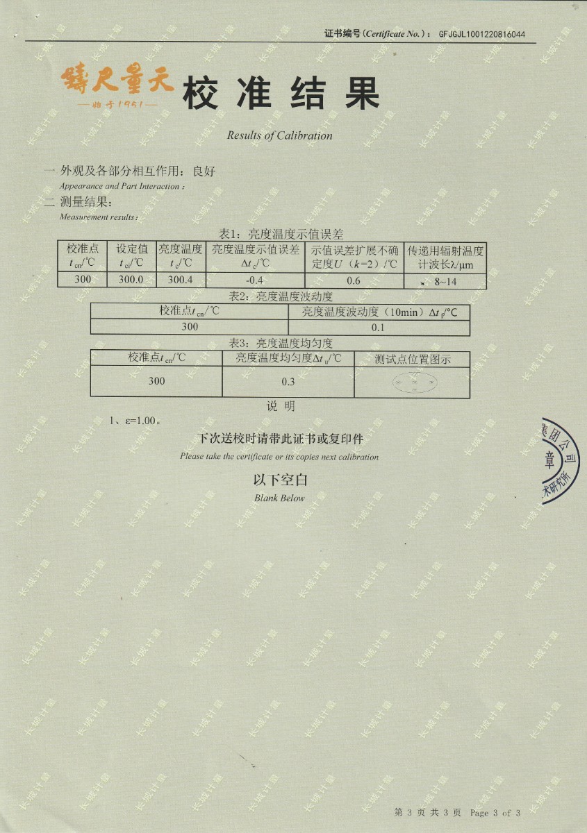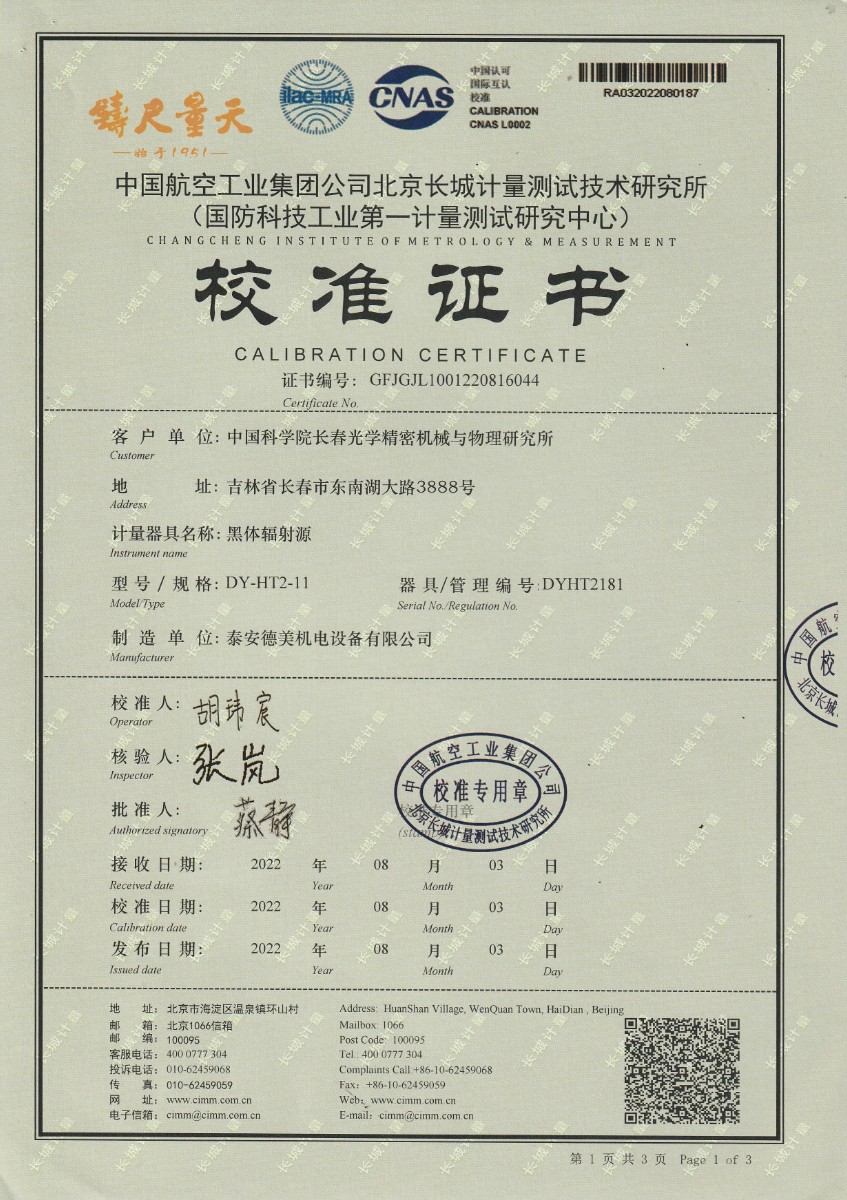 上一條:中國科學(xué)院長春光學(xué)精密機械與物理研究所-黑體爐DY-HT2-2 | 下一條:超低溫面源黑體爐(-40-80℃)校準證書 |