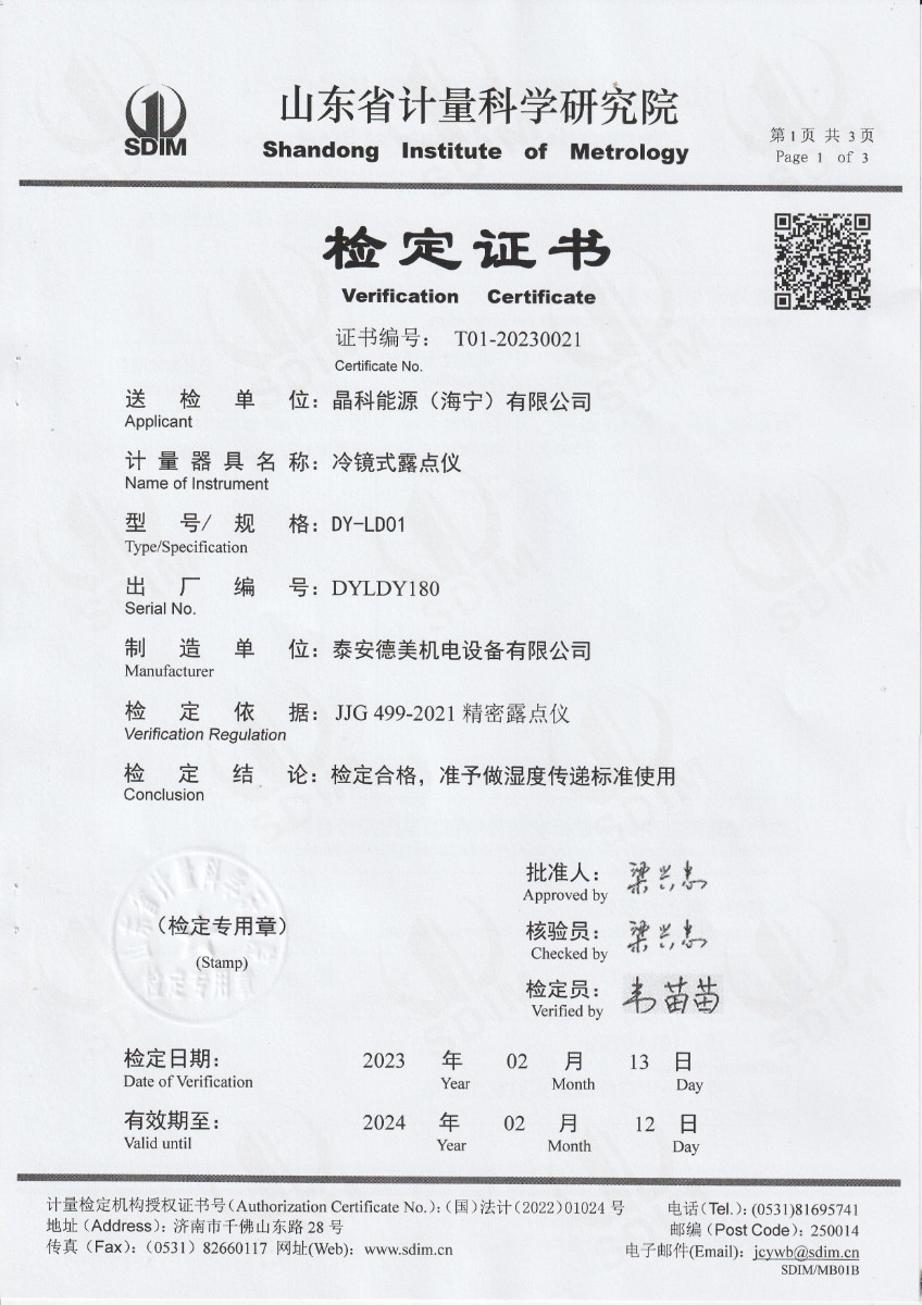 上一條:西安楊森制藥有限公司 冷鏡式露點(diǎn)儀(溫度) 校準(zhǔn)證書 | 下一條:便攜式干體爐(-30-150℃)校準(zhǔn)證書 |
