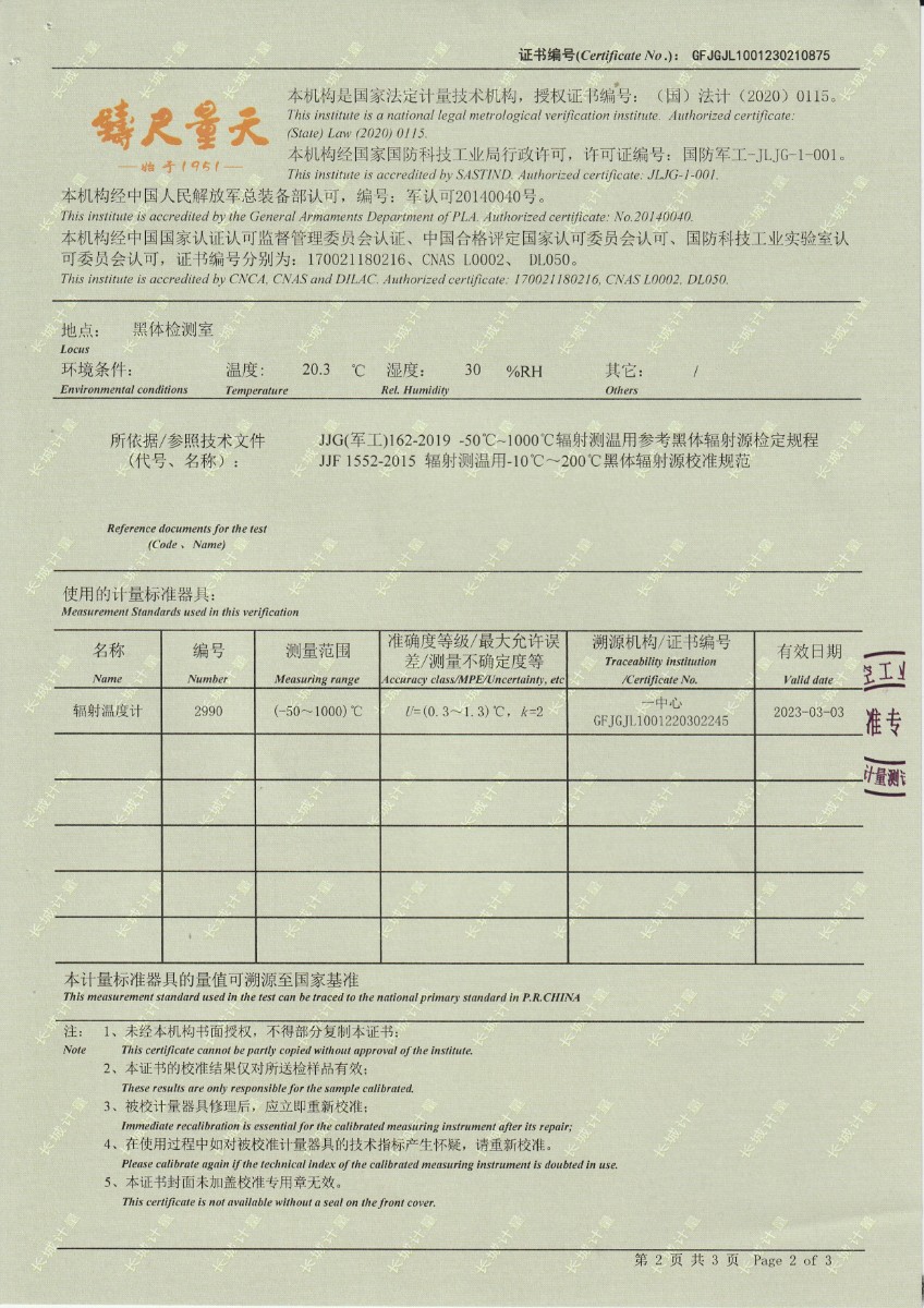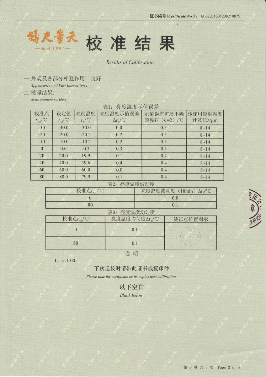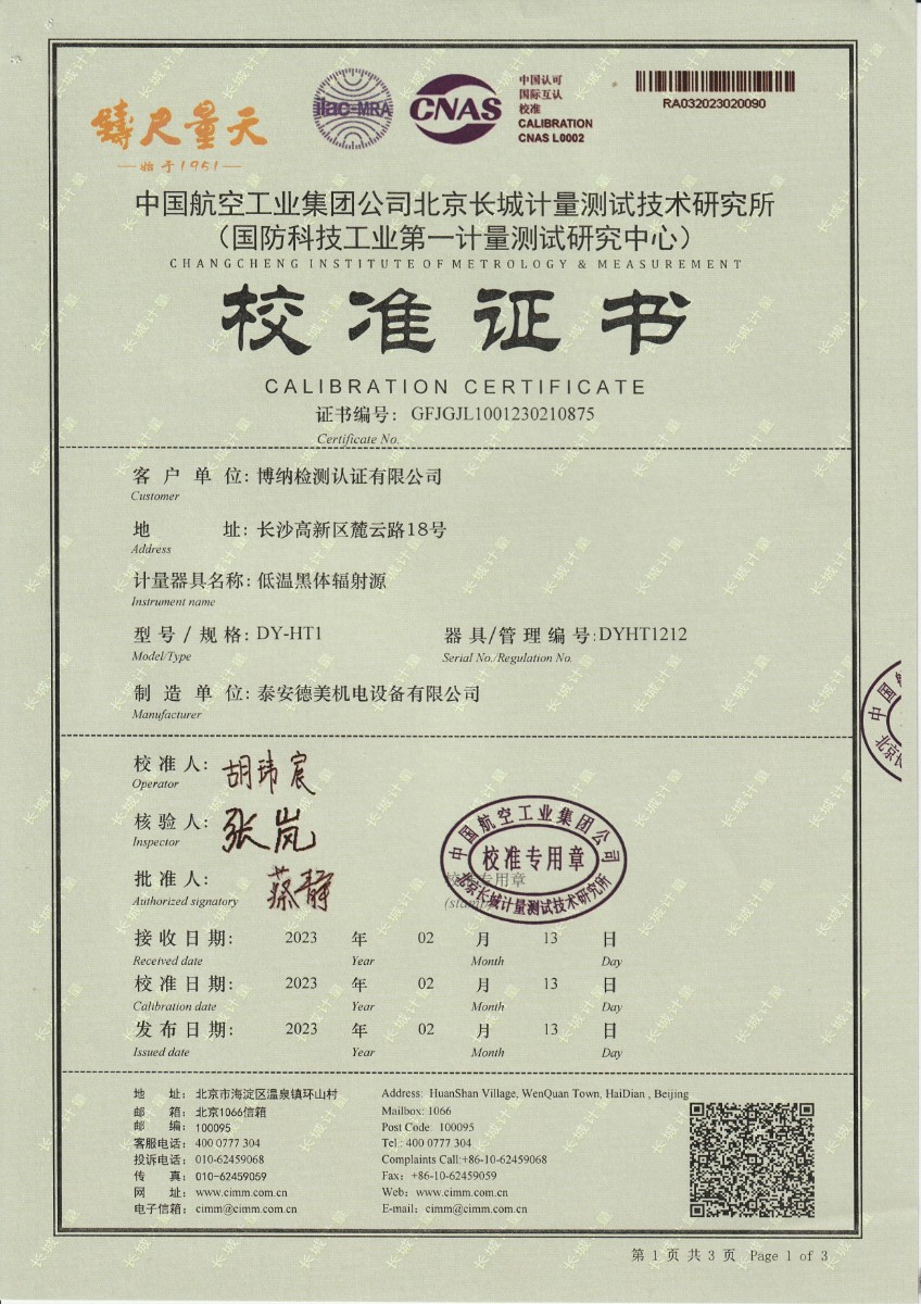 博納檢測認證有限公司 低溫黑體輻射源 校準證書 2023-2-25 本文被閱讀 10622 次