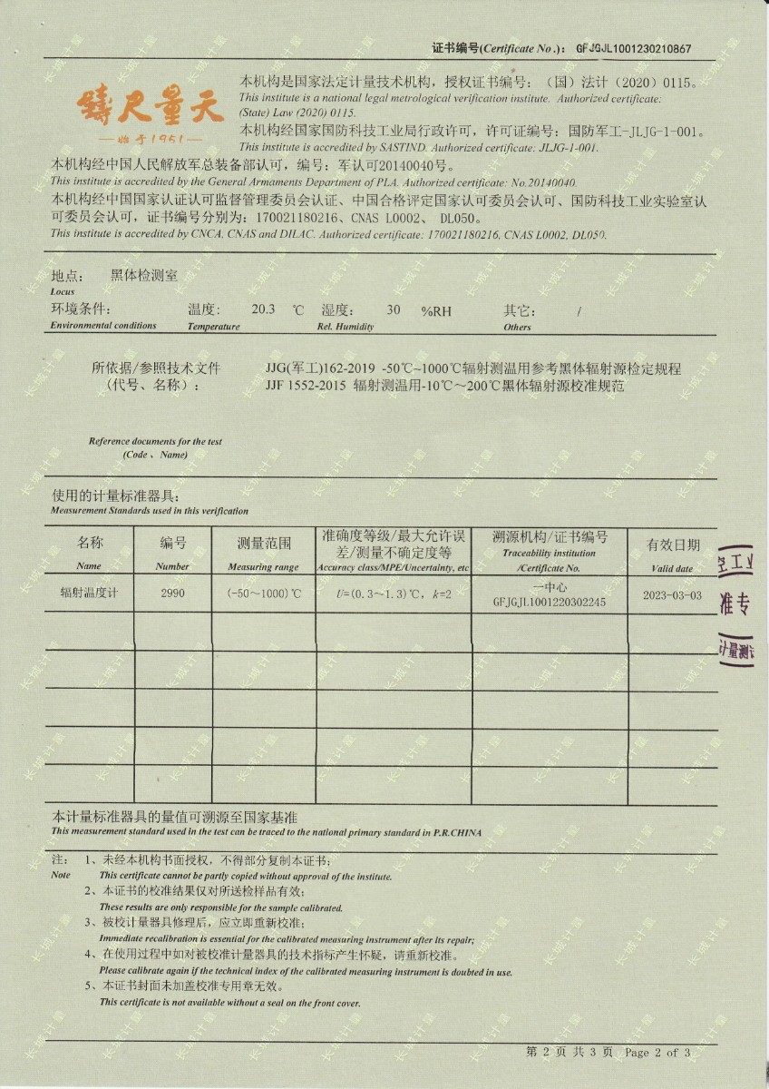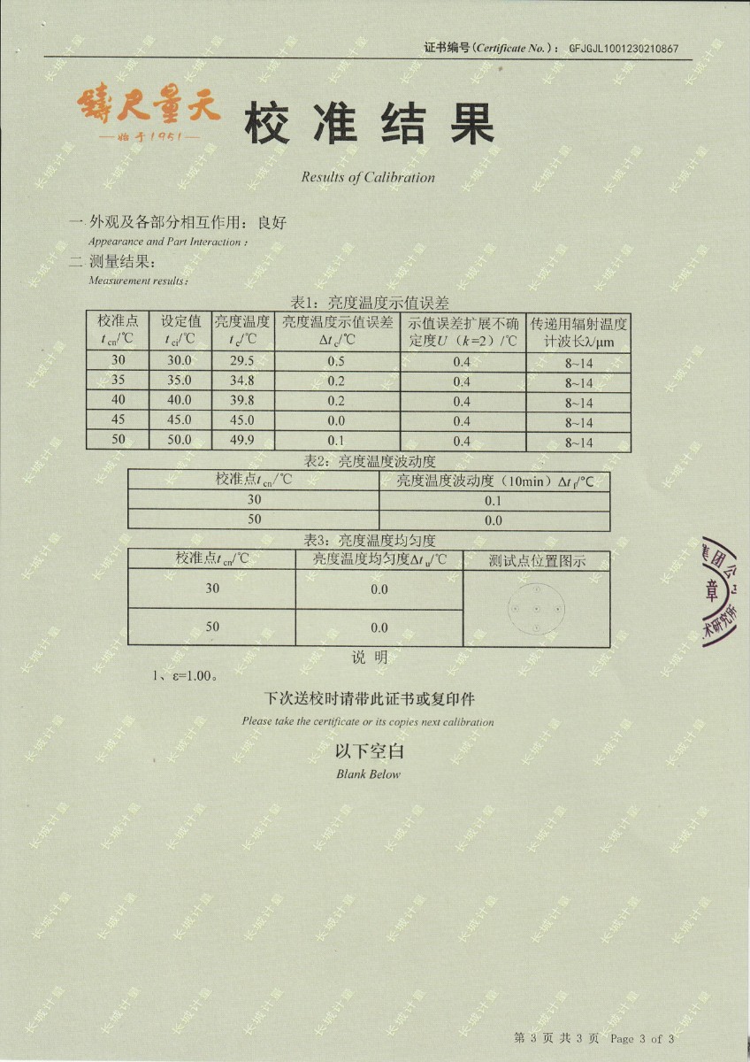 上一條:江蘇省產(chǎn)品質(zhì)量監(jiān)督檢驗(yàn)研究院 黑體輻射源 校準(zhǔn)證書(shū) | 下一條:超低溫面源黑體爐(-40-80℃)校準(zhǔn)證書(shū) |