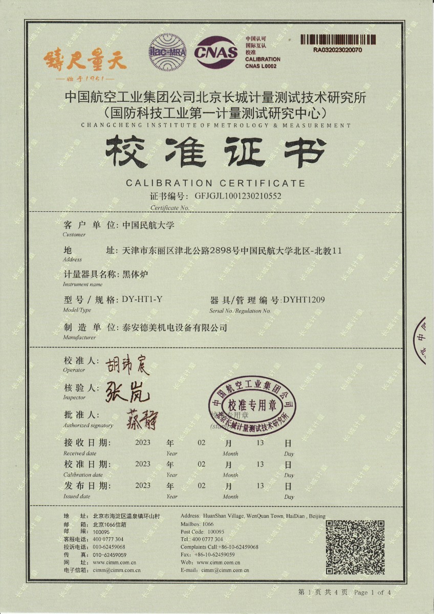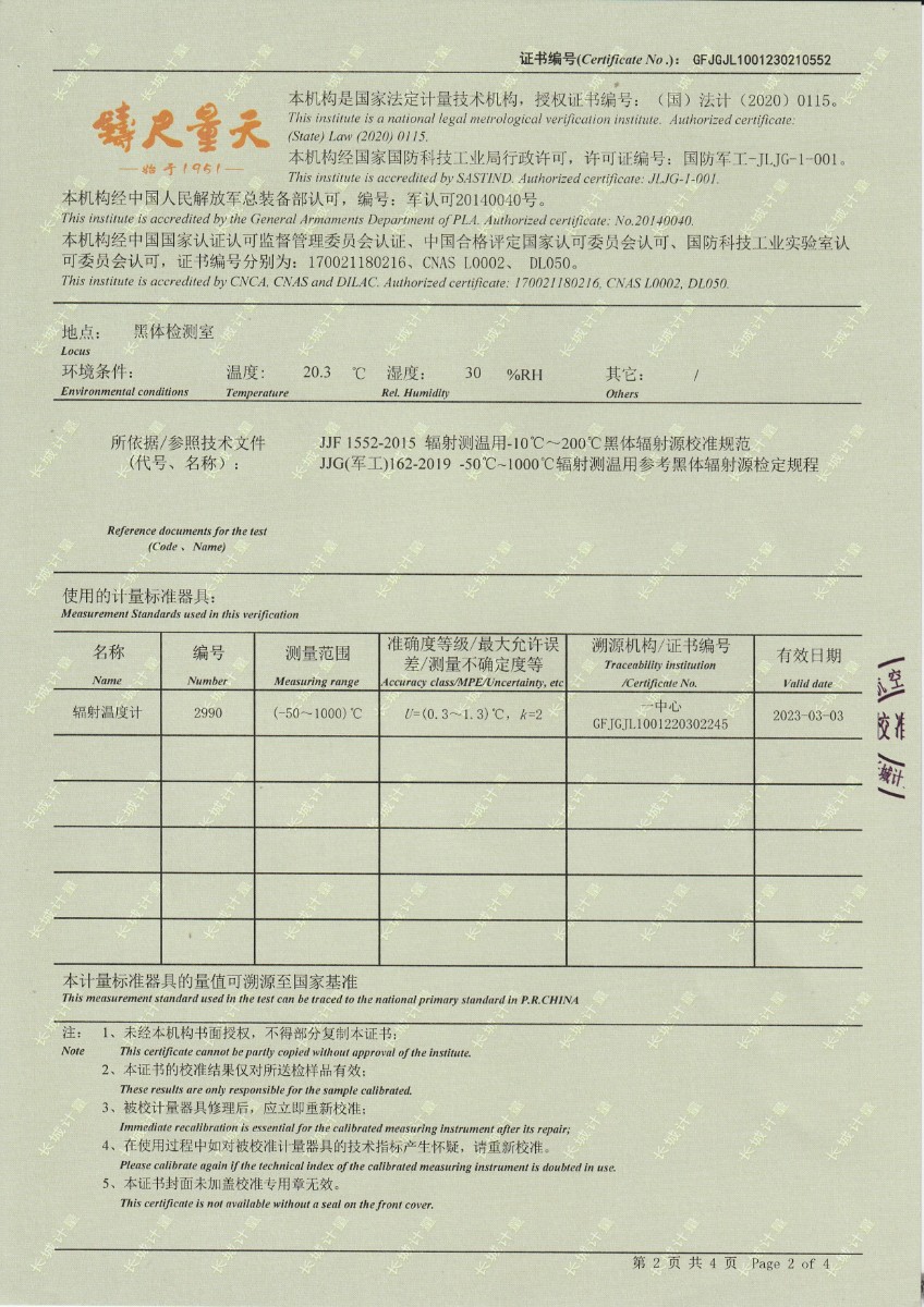 上一條:煙臺信泰檢測技術(shù)服務(wù)有限公司 黑體爐 校準證書 | 下一條:超低溫面源黑體爐(-40-80℃)校準證書 |