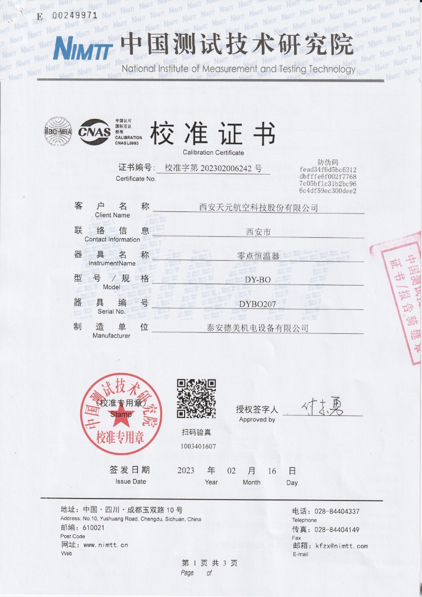 上一條:青島加侖檢測(cè)技術(shù)服務(wù)有限公司 黑體輻射源 校準(zhǔn)證書 | 下一條:超低溫面源黑體爐(-40-80℃)校準(zhǔn)證書 |