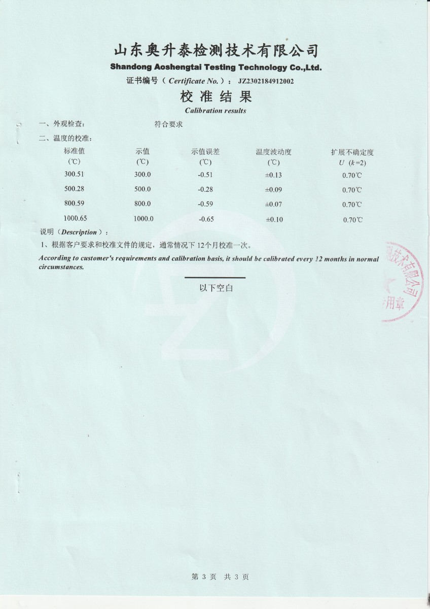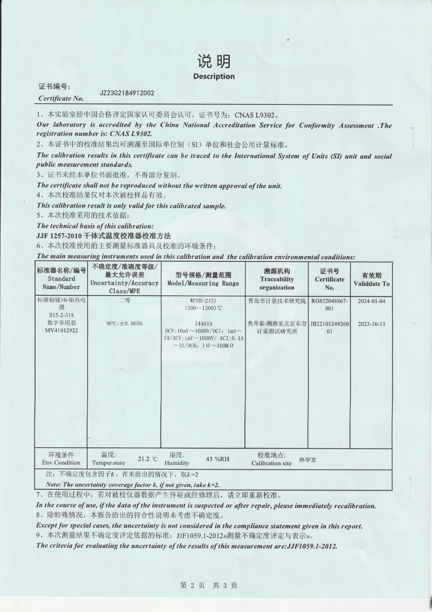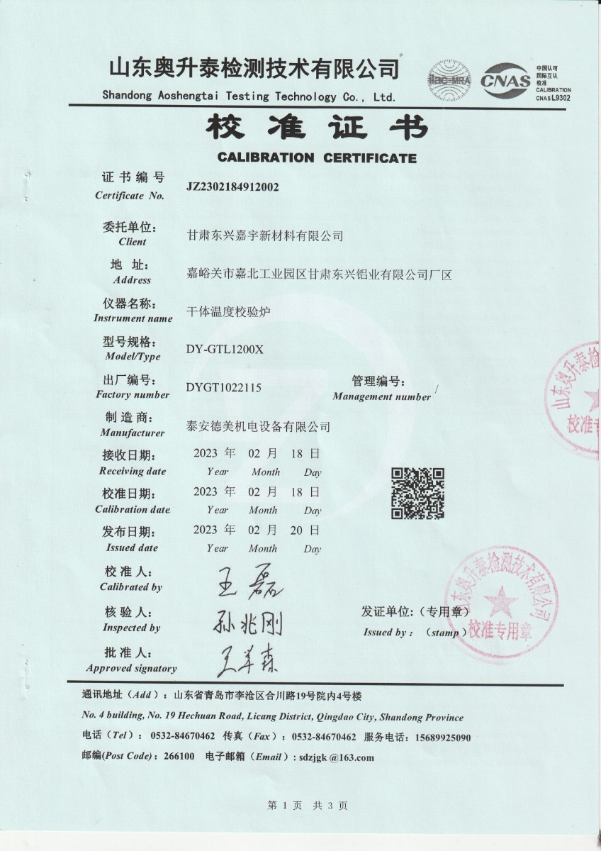上一條:甘肅東興嘉宇新材料有限公司 干體溫度校驗(yàn)爐 校準(zhǔn)證書(shū)(1) | 下一條:超低溫面源黑體爐(-40-80℃)校準(zhǔn)證書(shū) |