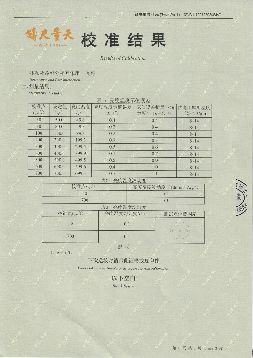 上一條:勝利油田東強(qiáng)機(jī)電設(shè)備制造有限公司 恒溫水槽 校準(zhǔn)證書(shū) | 下一條:超低溫面源黑體爐(-40-80℃)校準(zhǔn)證書(shū) |
