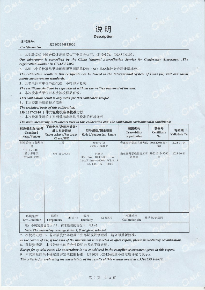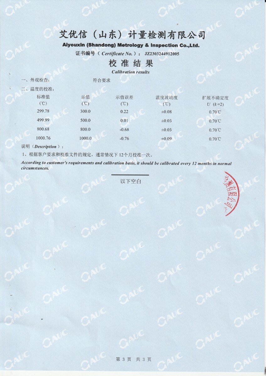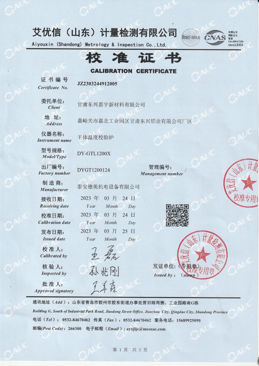 甘肅東興嘉寧新材料有限公司 干體溫度校驗爐 校準證書 2023-3-31 本文被閱讀 12406 次