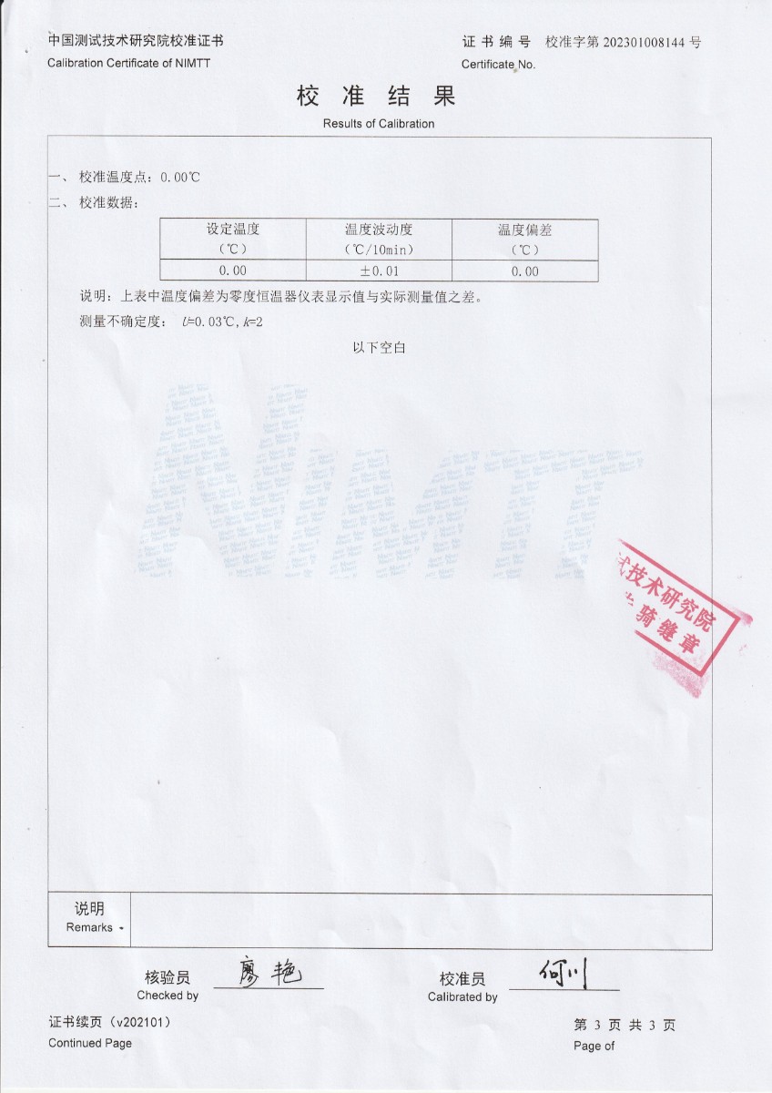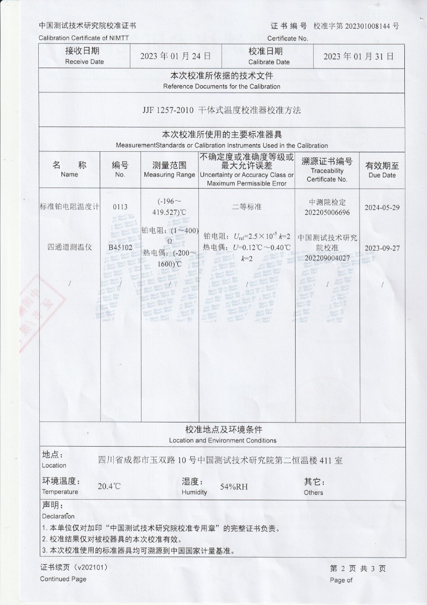 上一條:甘肅東興嘉寧新材料有限公司 干體溫度校驗(yàn)爐 校準(zhǔn)證書下一條:超低溫面源黑體爐(-40-80℃)校準(zhǔn)證書