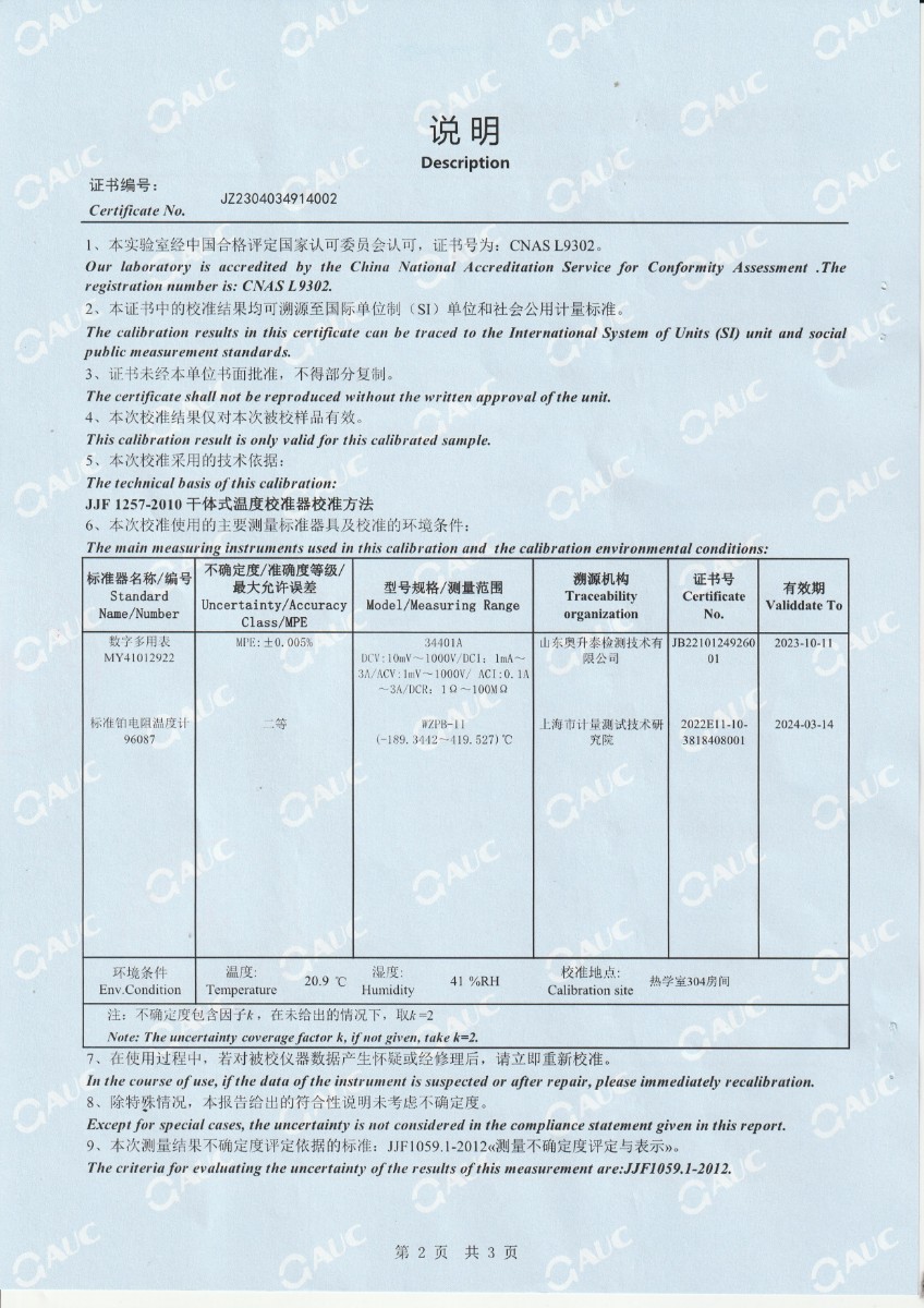上一條:開封光利高科實業(yè)有限責(zé)任公司送變電公司 變壓器溫度計校驗裝置 校準(zhǔn)證書(1) | 下一條:超低溫面源黑體爐(-40-80℃)校準(zhǔn)證書 |