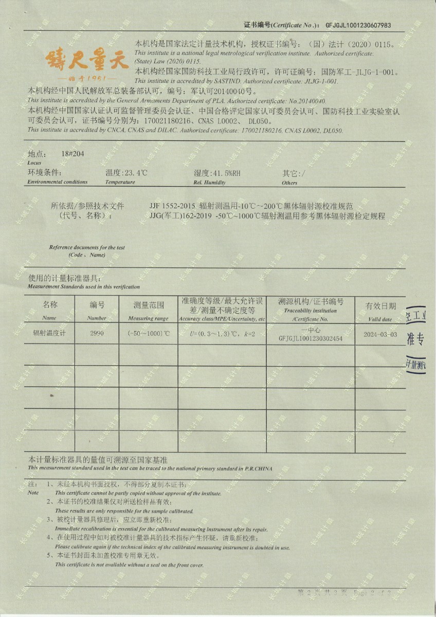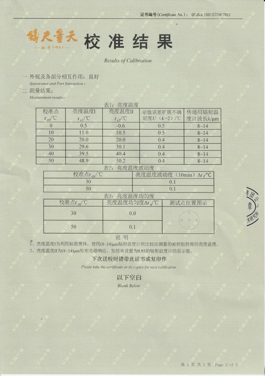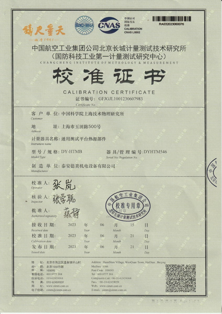 上一條:中國科學院上海技術物理研究所-通用測試平臺熱源部件(DYHTM545) | 下一條:便攜式干體爐(-30-150℃)校準證書 |