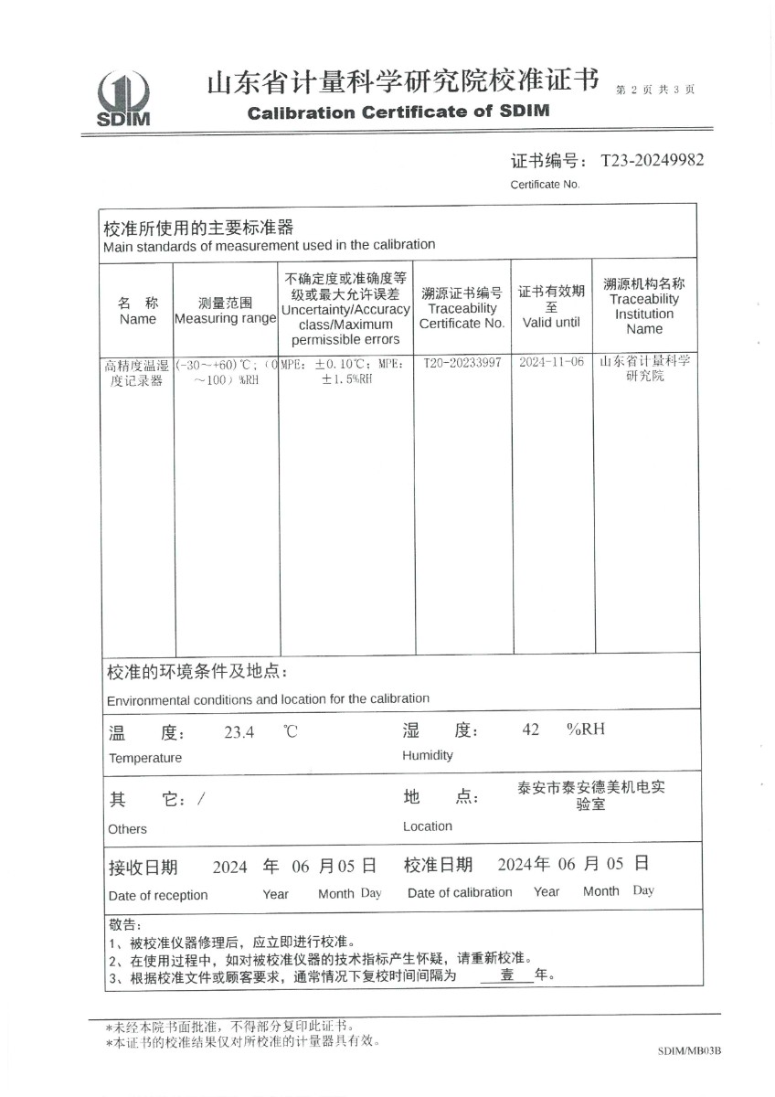 溫濕度檢定箱(-20~65℃)校準(zhǔn)證書 2024-6-11 本文被閱讀 6382 次