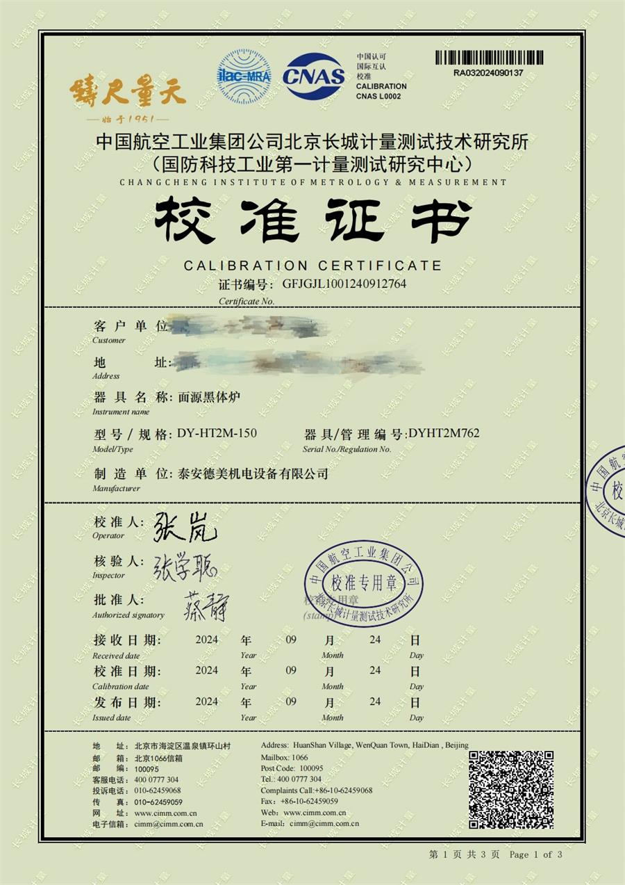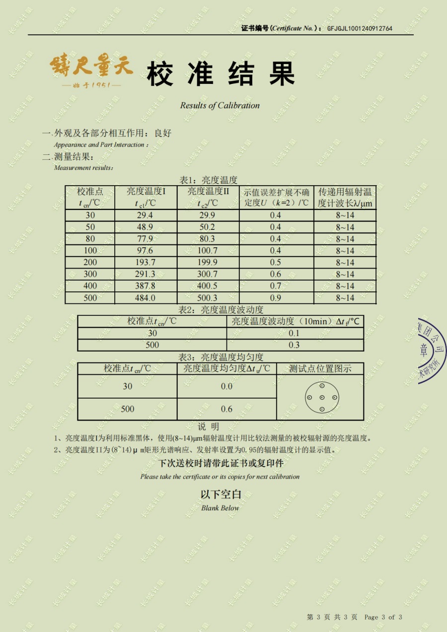 上一條:黑體輻射源(50-700℃)校準(zhǔn)證書 | 下一條:超低溫面源黑體爐(-40-80℃)校準(zhǔn)證書 |