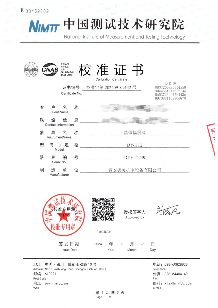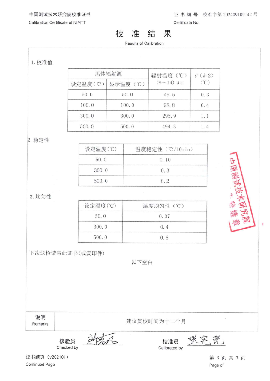 上一條:浴式黑體校準(zhǔn)證書(shū) | 下一條:超低溫面源黑體爐(-40-80℃)校準(zhǔn)證書(shū) |