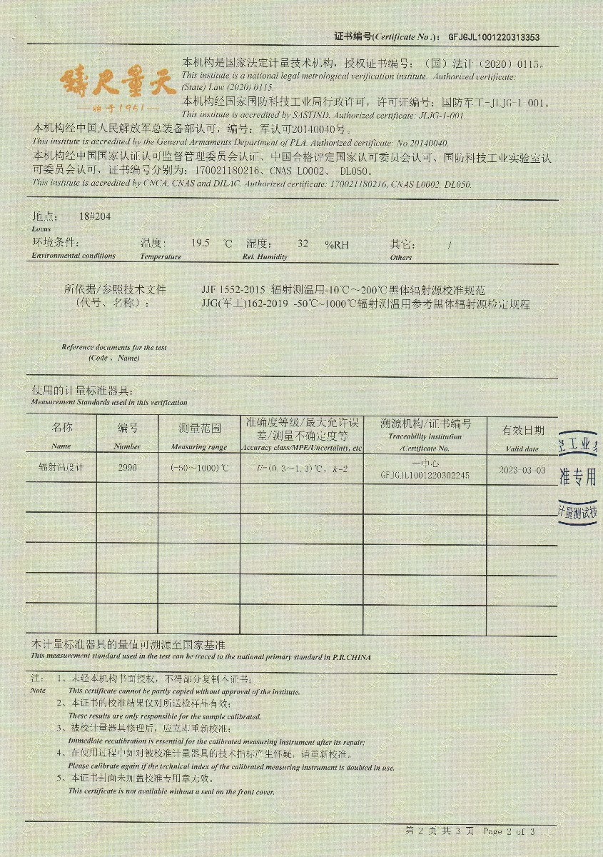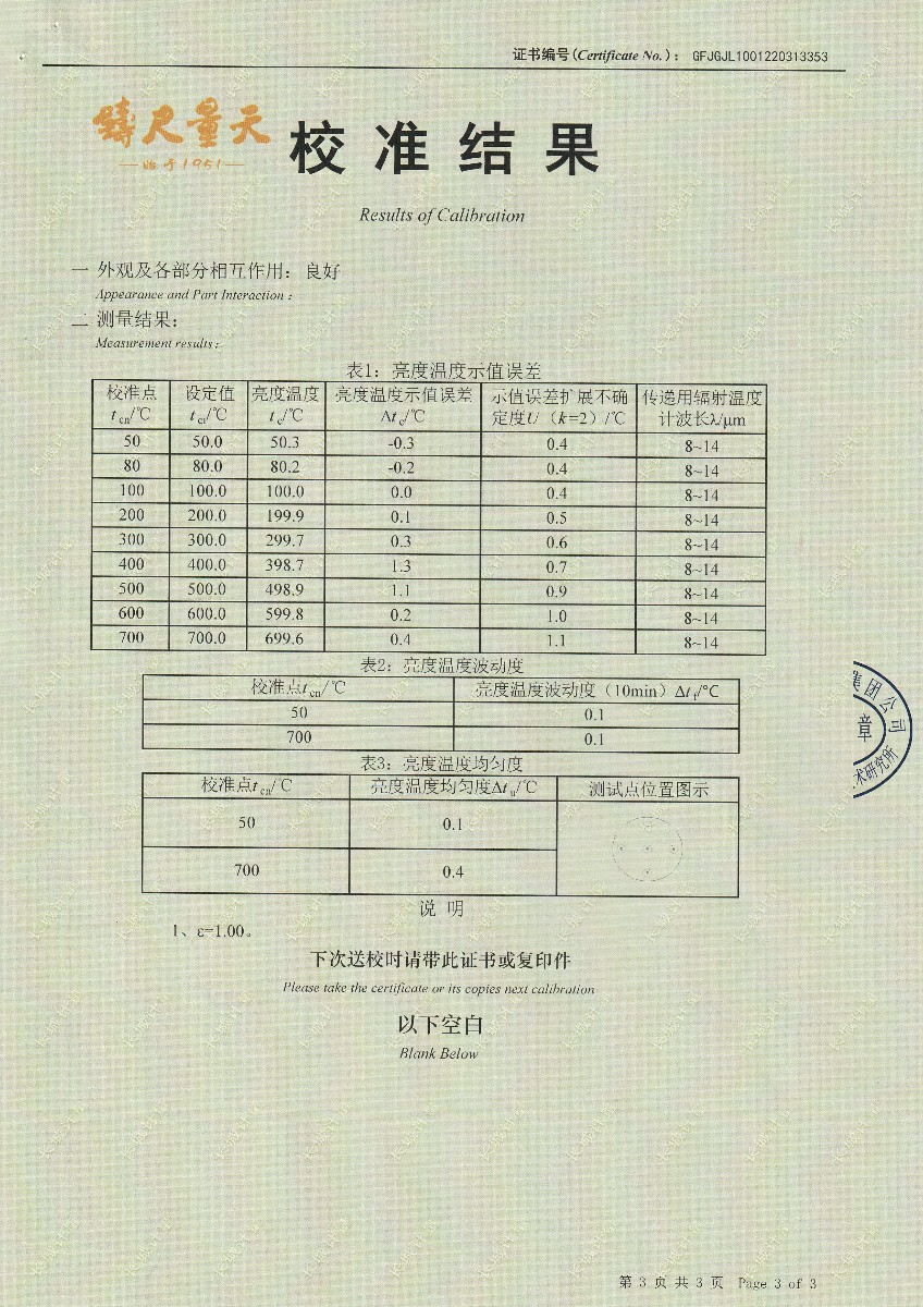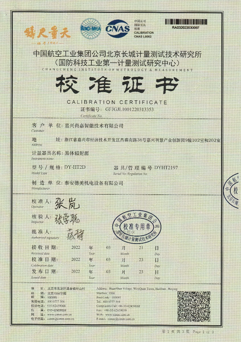 上一條:嘉興尚嘉智能技術有限公司-黑體輻射源(DY-HT1A)下一條:便攜式干體爐(-30-150℃)校準證書