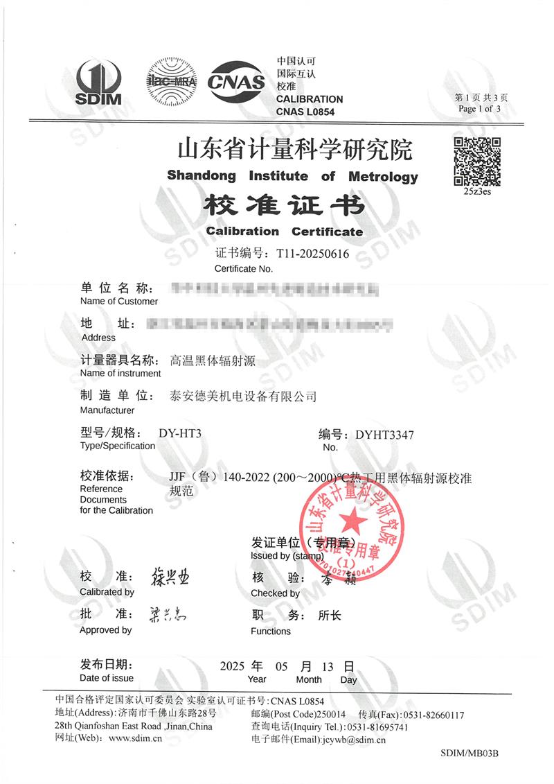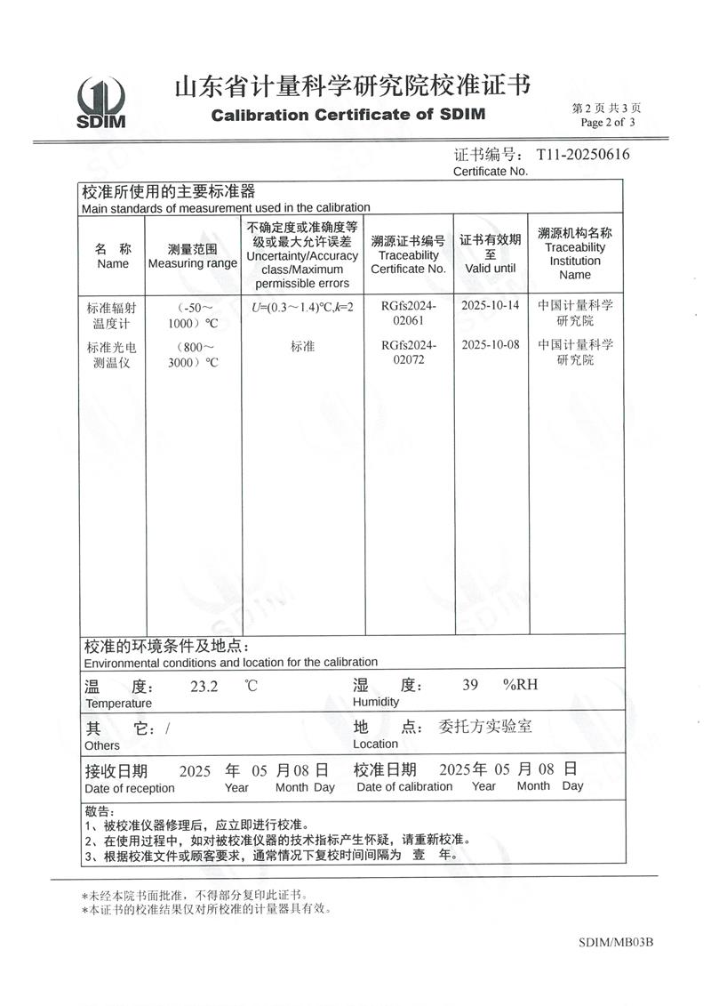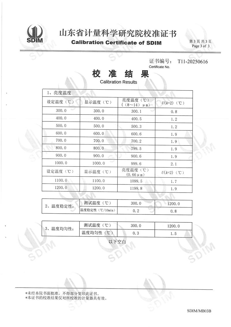 高溫黑體爐(300~1200℃)校準證書 2025-5-16 本文被閱讀 2798 次