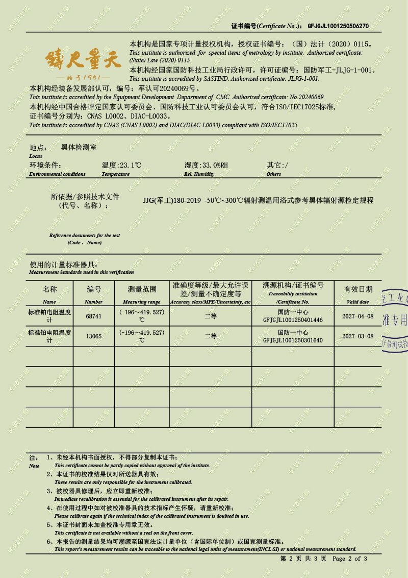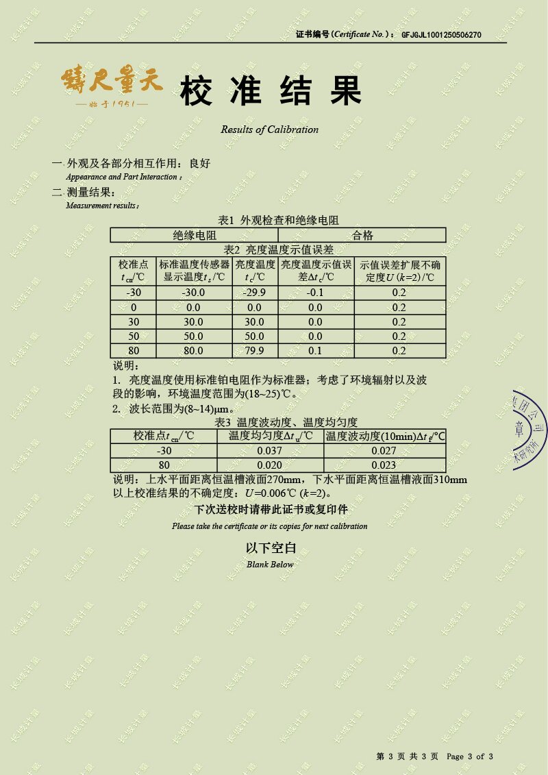 浴式黑體輻射源(-30-80℃)校準證書 2025-5-21 本文被閱讀 2846 次
