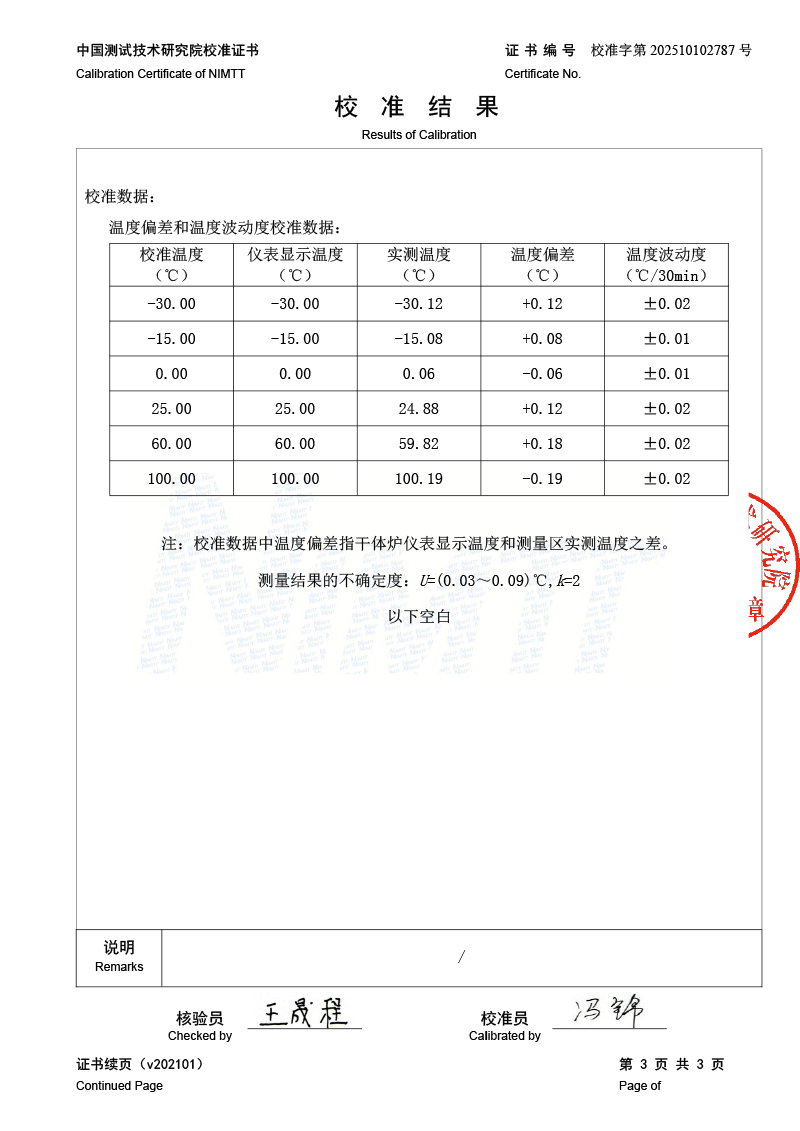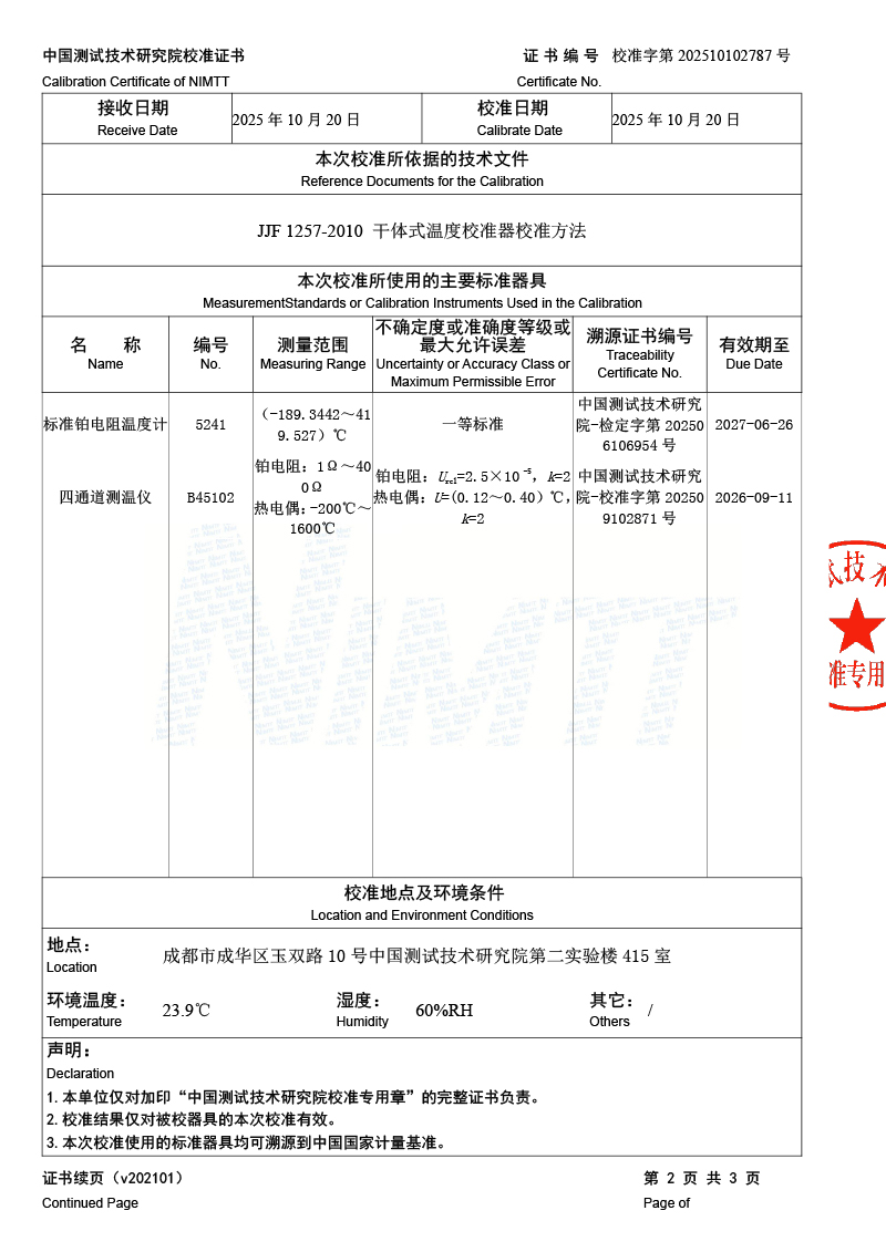 便攜式干體爐(-30-150℃)校準(zhǔn)證書 2025-10-21 本文被閱讀 16 次