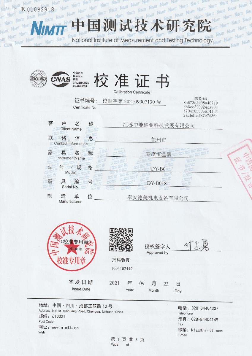 | 上一條:江蘇中能硅業(yè)科技發(fā)展有限公司-S分度補(bǔ)償導(dǎo)線 | 下一條:便攜式溫濕度檢定箱(-10-60℃)校準(zhǔn)證書 |
