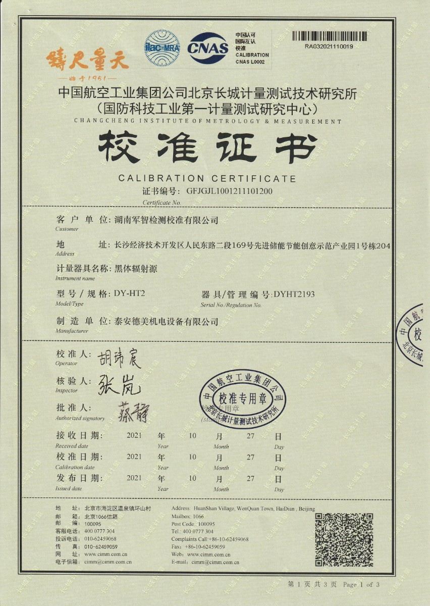 | 上一條:河北華科質(zhì)檢技術(shù)服務(wù)有限公司-黑體輻射源(DY-HT3) | 下一條:便攜式干體爐(-30-150℃)校準(zhǔn)證書 |