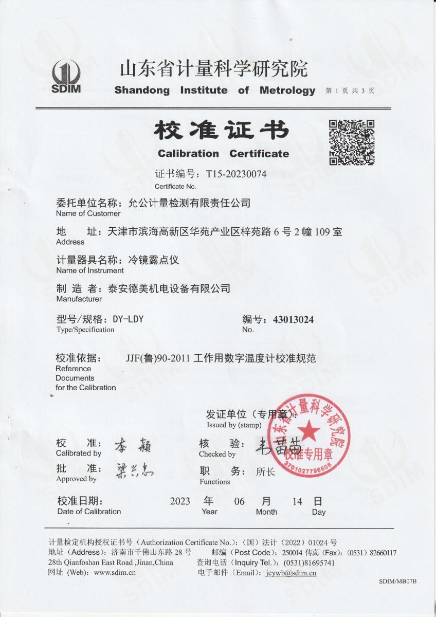 上一條:鹽城熱電有限責(zé)任公司-零點(diǎn)恒溫器 | 下一條:超低溫面源黑體爐(-40-80℃)校準(zhǔn)證書(shū) |