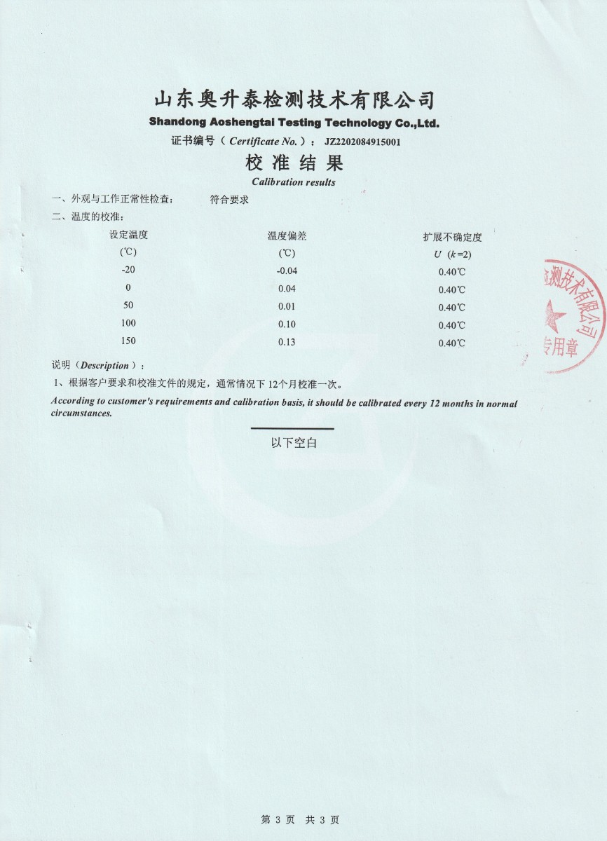 | 上一條:遼寧昆侖儀器儀表檢驗(yàn)檢測有限公司-高精度數(shù)字溫度計(jì) | 下一條:便攜式干體爐(-30-150℃)校準(zhǔn)證書 |