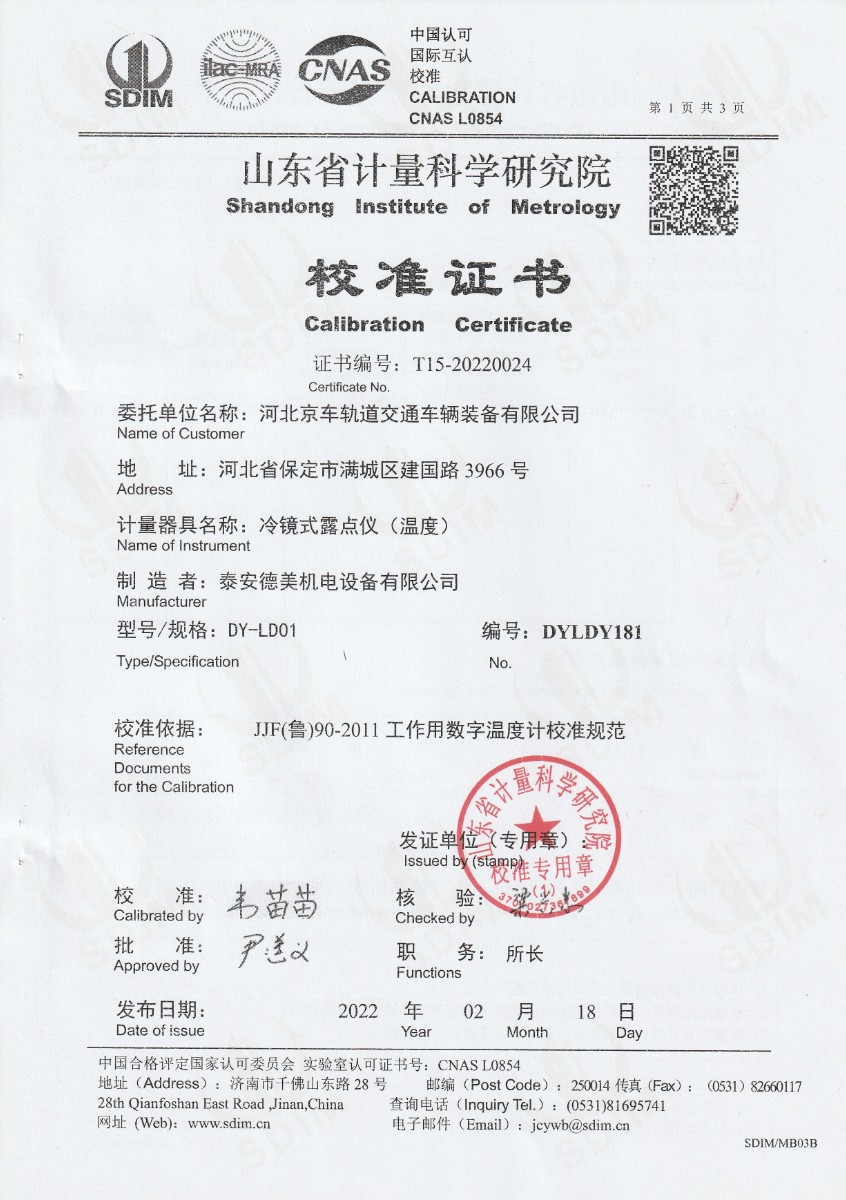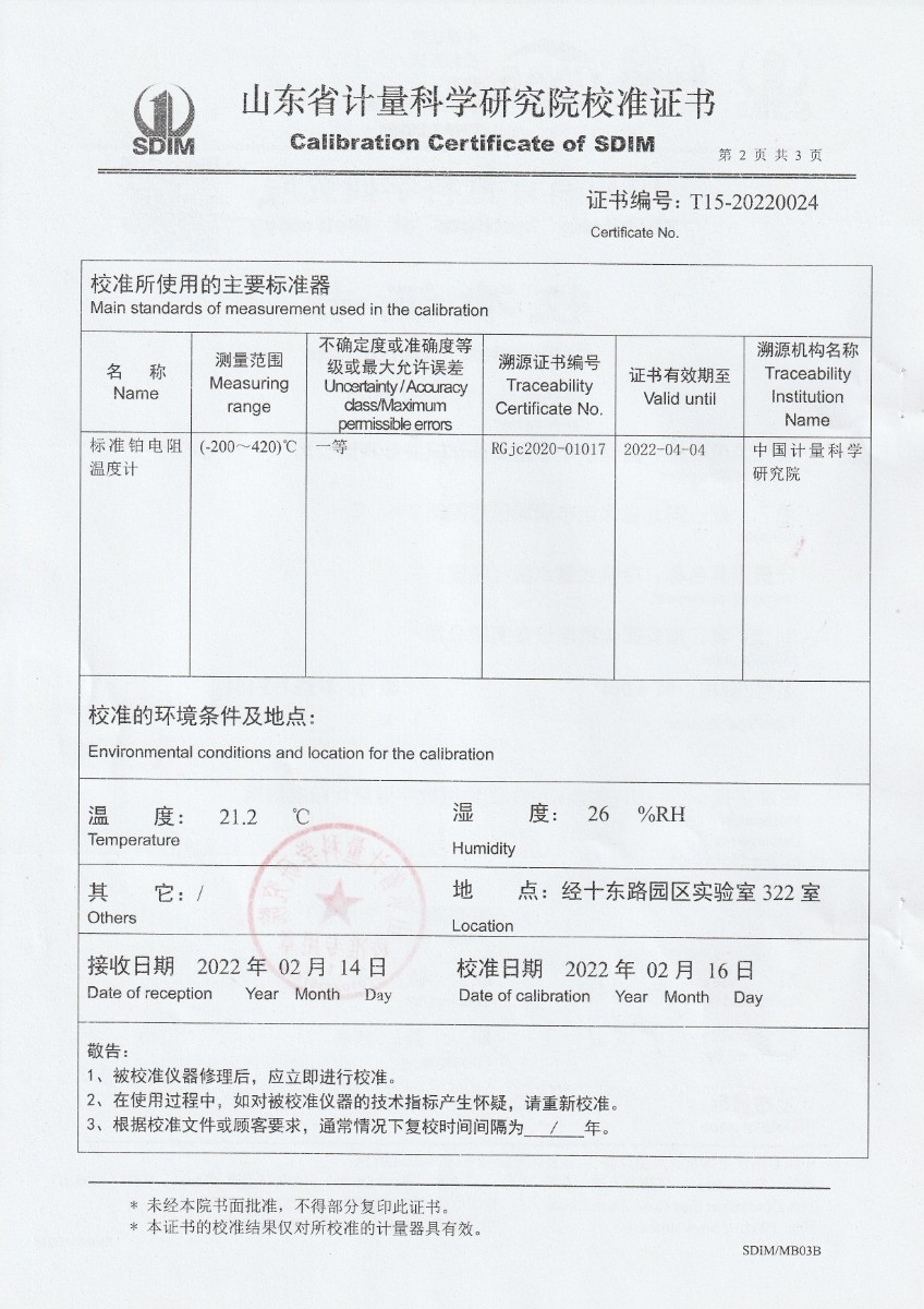 | 上一條:鄭州賽奧電子股份有限公司-干體爐DYGT150246 | 下一條:便攜式干體爐(-30-150℃)校準證書 |