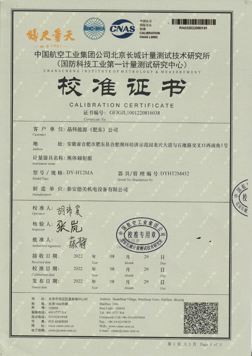 晶科能源(肥東)公司-黑體輻射源 2022-9-5 本文被閱讀 12293 次