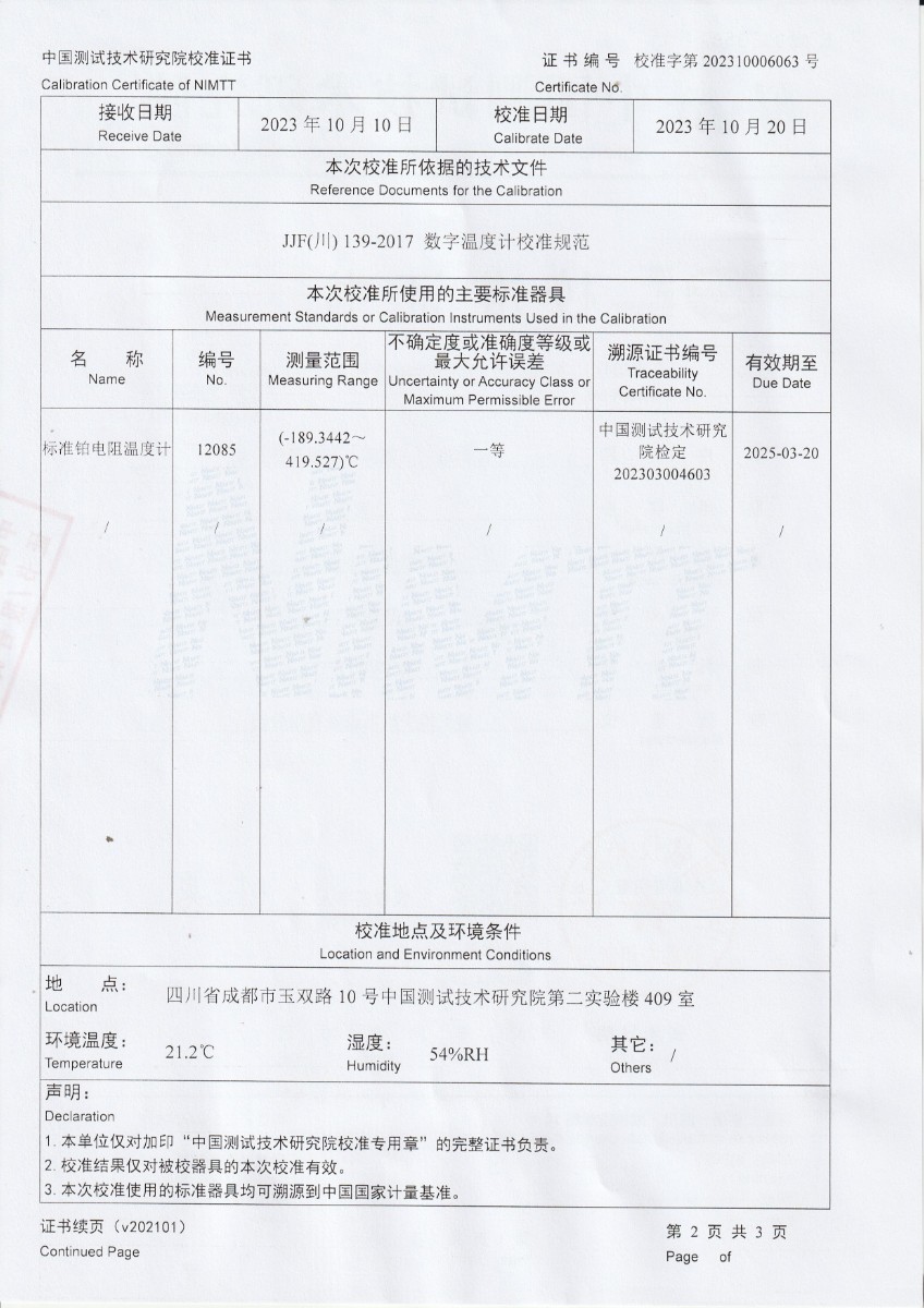 上一條:熱工鑒定系統(tǒng)下一條:便攜式干體爐(-30-150℃)校準(zhǔn)證書