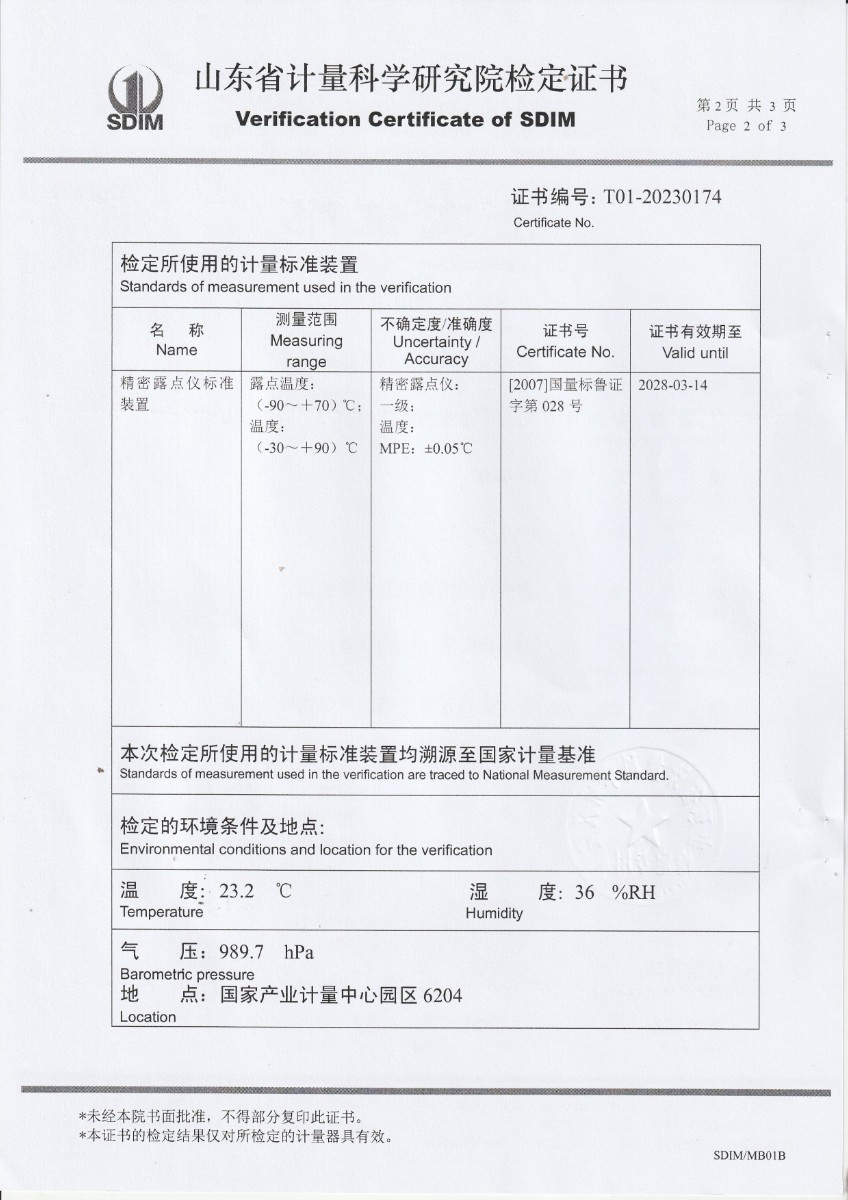 冷鏡式露點儀檢定證書 2023-12-13 本文被閱讀 8185 次