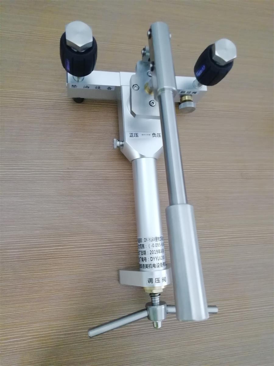 DY-YL6X便攜式手動(dòng)氣壓源(0~6MPA)采用開(kāi)放、透明式的微壓、中壓一體式設(shè)計(jì),具有操作簡(jiǎn)單、升降壓平穩(wěn)、調(diào)節(jié)細(xì)度小、維護(hù)方便、不易泄漏的特點(diǎn)。便攜式結(jié)構(gòu)可使您的校準(zhǔn)工作事半功倍。主要用于現(xiàn)場(chǎng)或?qū)嶒?yàn)室校驗(yàn)壓力(差壓)變送器、精mi壓力表、其他壓力儀器儀表時(shí),提供壓力。