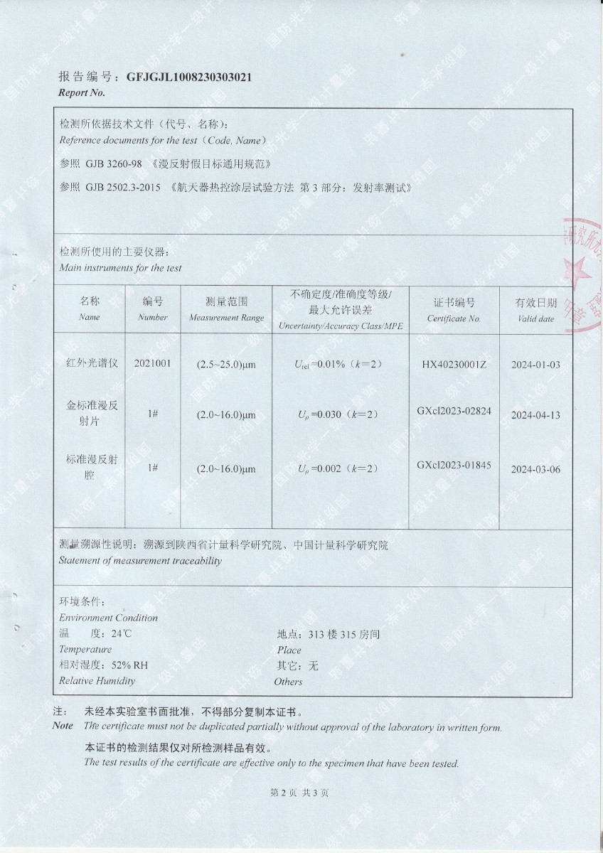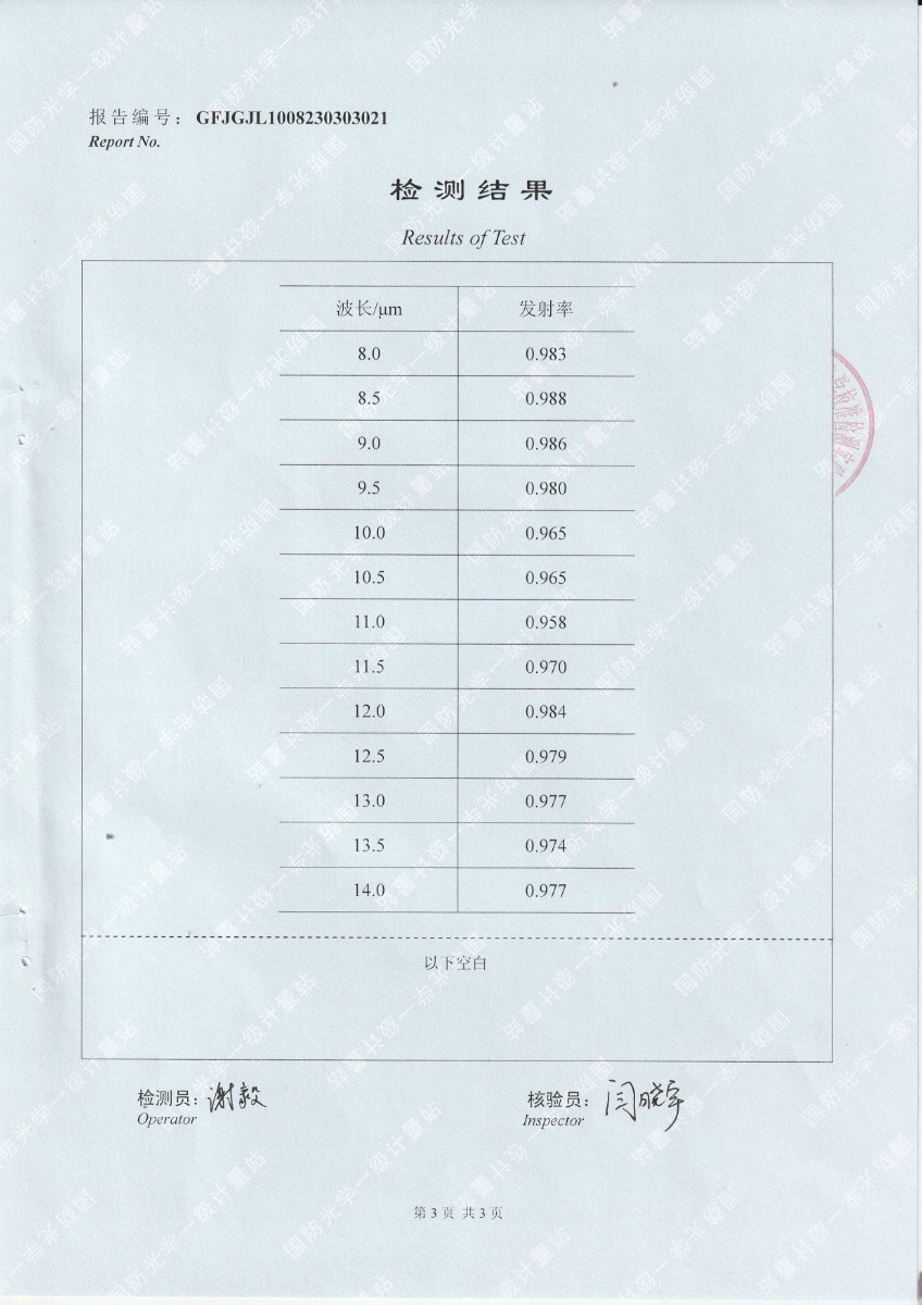 北京龍知遠科技發(fā)展有限公司-黑體輻射源涂層樣片DYHT1MF140檢測報告 2023-9-4 本文被閱讀 8825 次