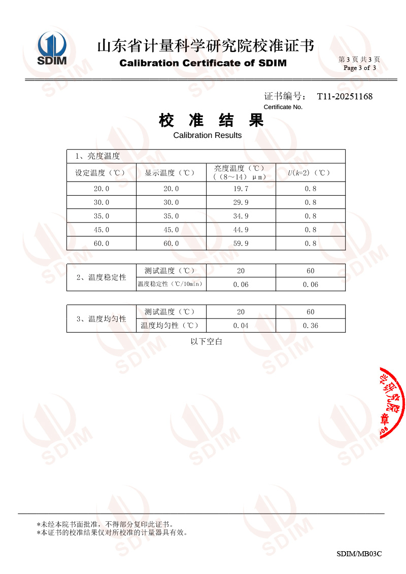高精度低溫黑體(-10-100℃)校準(zhǔn)證書 2025-8-6 本文被閱讀 1610 次