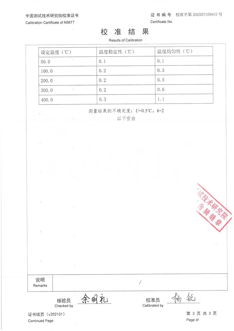 上一條:高精度低溫黑體(-10-100℃)校準證書下一條:超低溫面源黑體爐(-40-80℃)校準證書