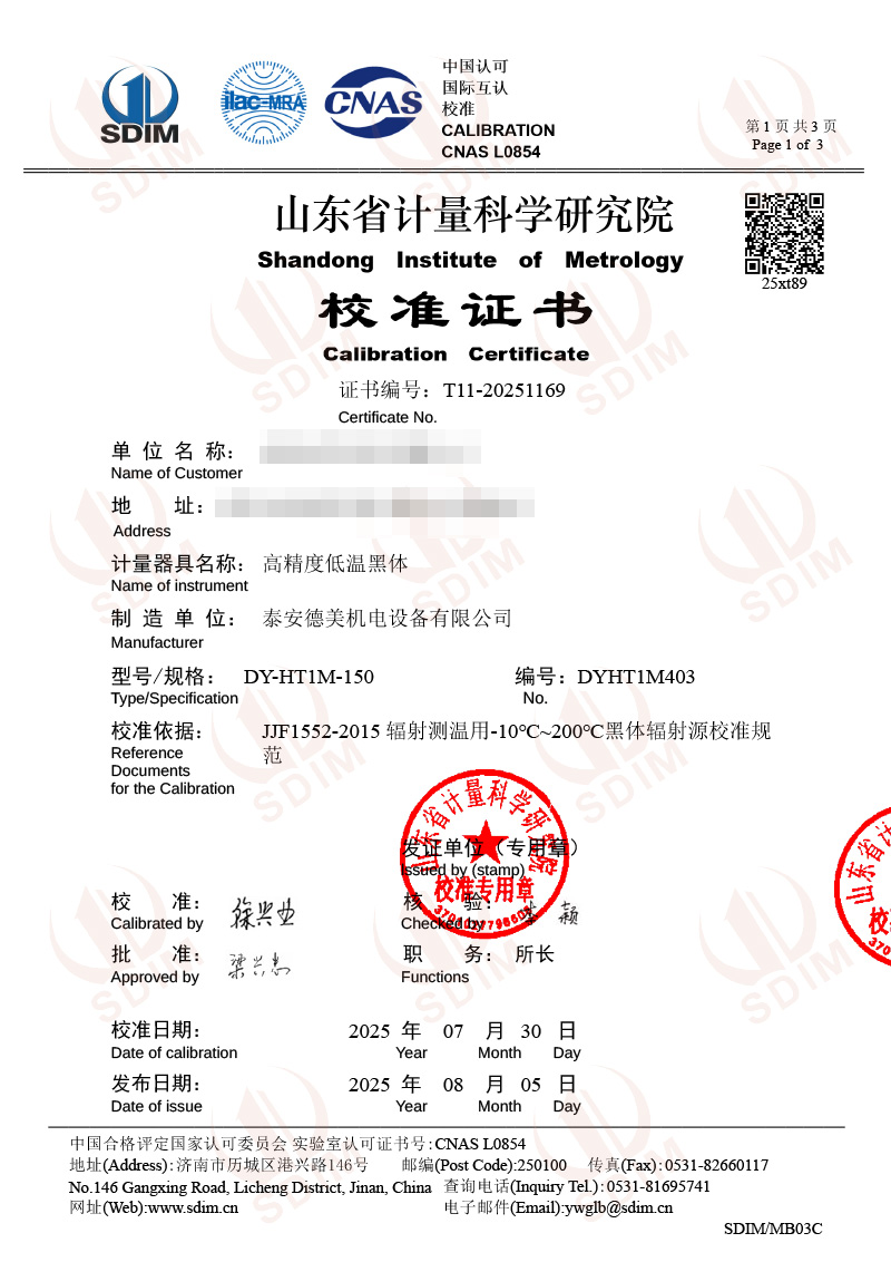 上一條:干體式溫度校準(zhǔn)器(40~650℃)校準(zhǔn)證書 | 下一條:超低溫面源黑體爐(-40-80℃)校準(zhǔn)證書 |