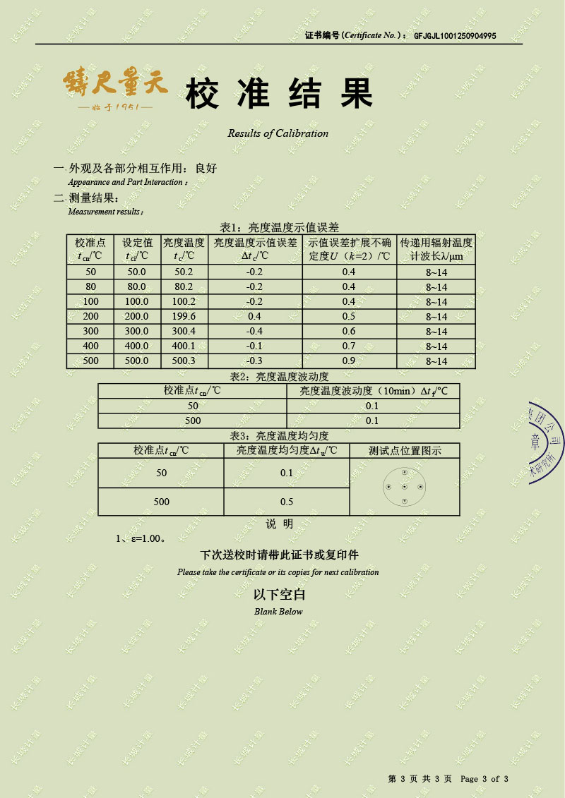 黑體輻射源(50-500℃)校準(zhǔn)證書 2025-9-12 本文被閱讀 1106 次