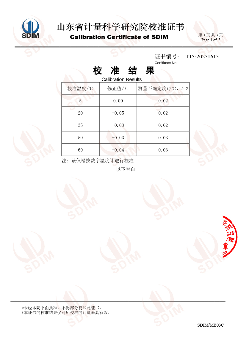 高精度數(shù)字溫度計(jì)(-20-100℃)校準(zhǔn)證書(shū)