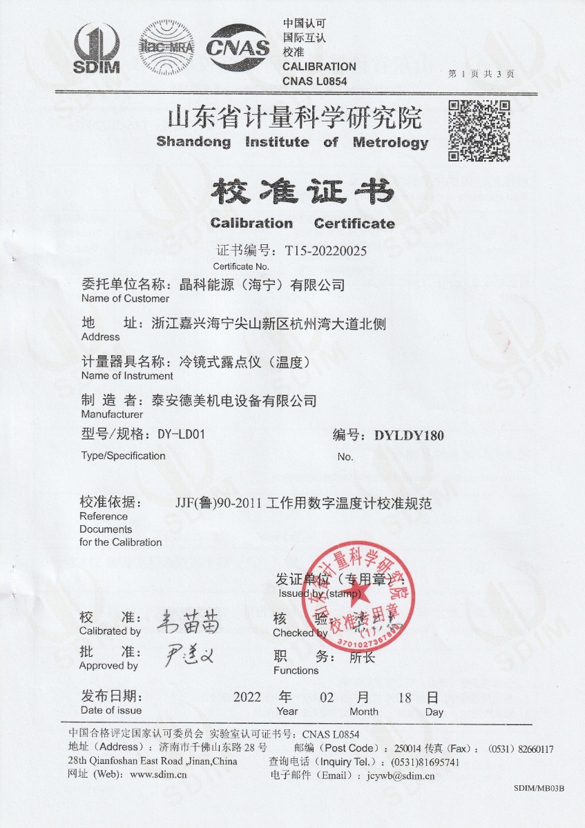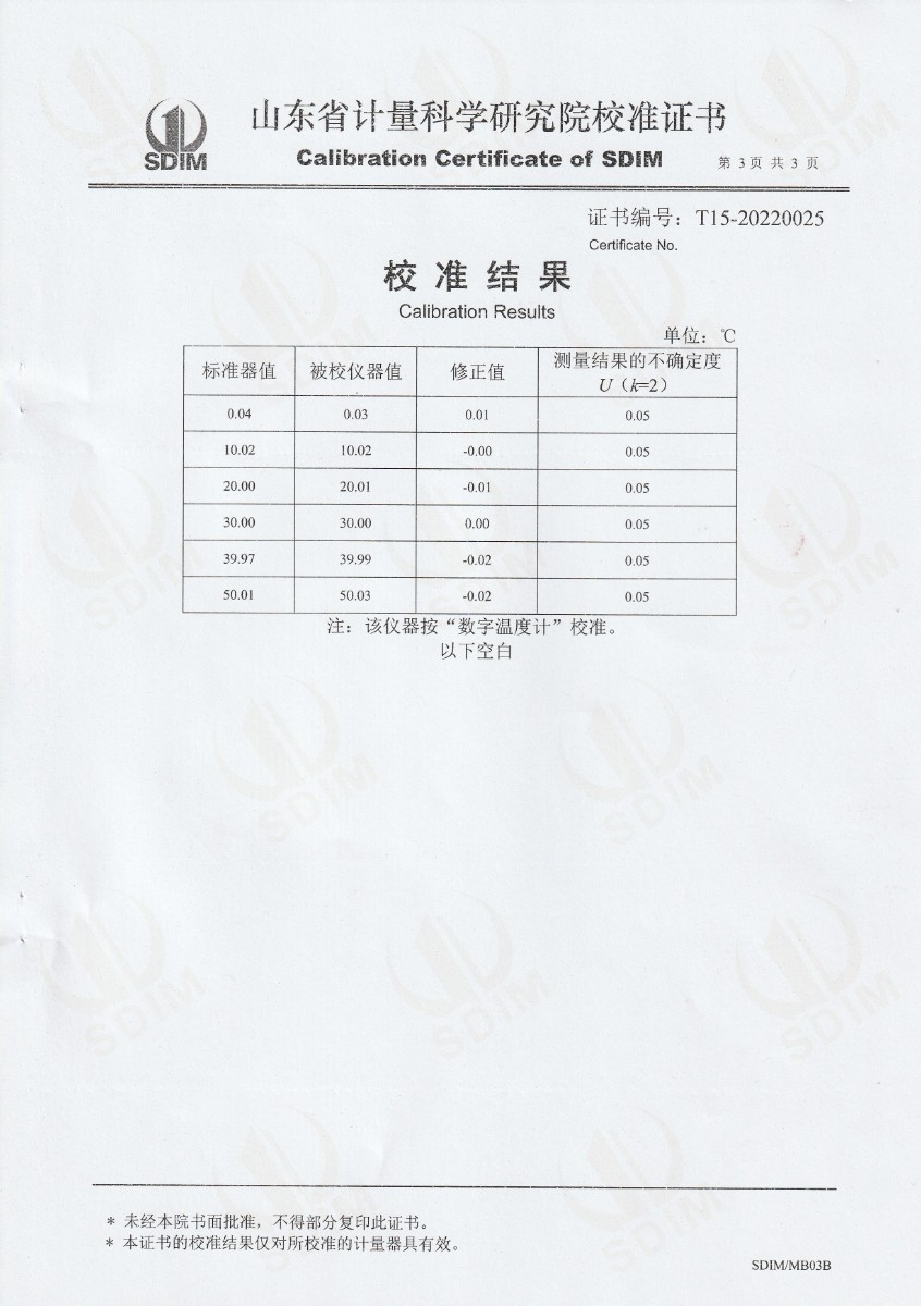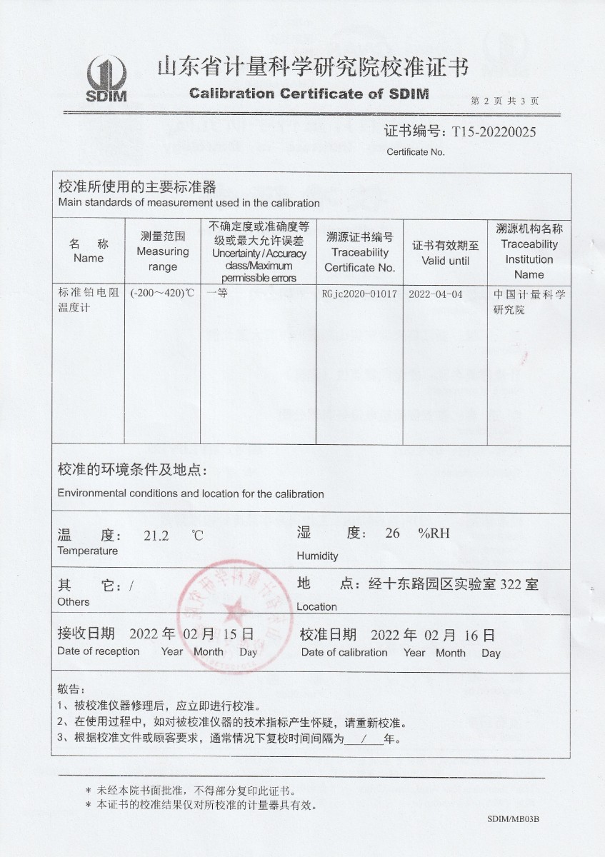 | 上一條:河北京車軌道交通車輛裝備有限公司-冷鏡式露點儀檢定證書 | 下一條:便攜式干體爐(-30-150℃)校準(zhǔn)證書 |
