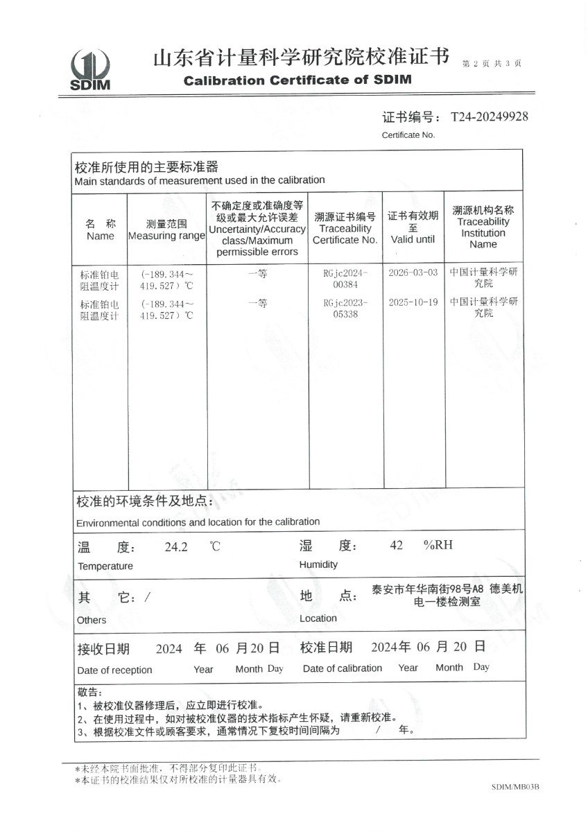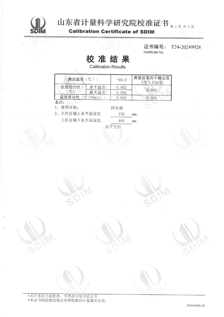 | 上一條:高精度恒溫油槽(90~300℃)校準(zhǔn)證書 | 下一條:便攜式干體爐(-30-150℃)校準(zhǔn)證書 |